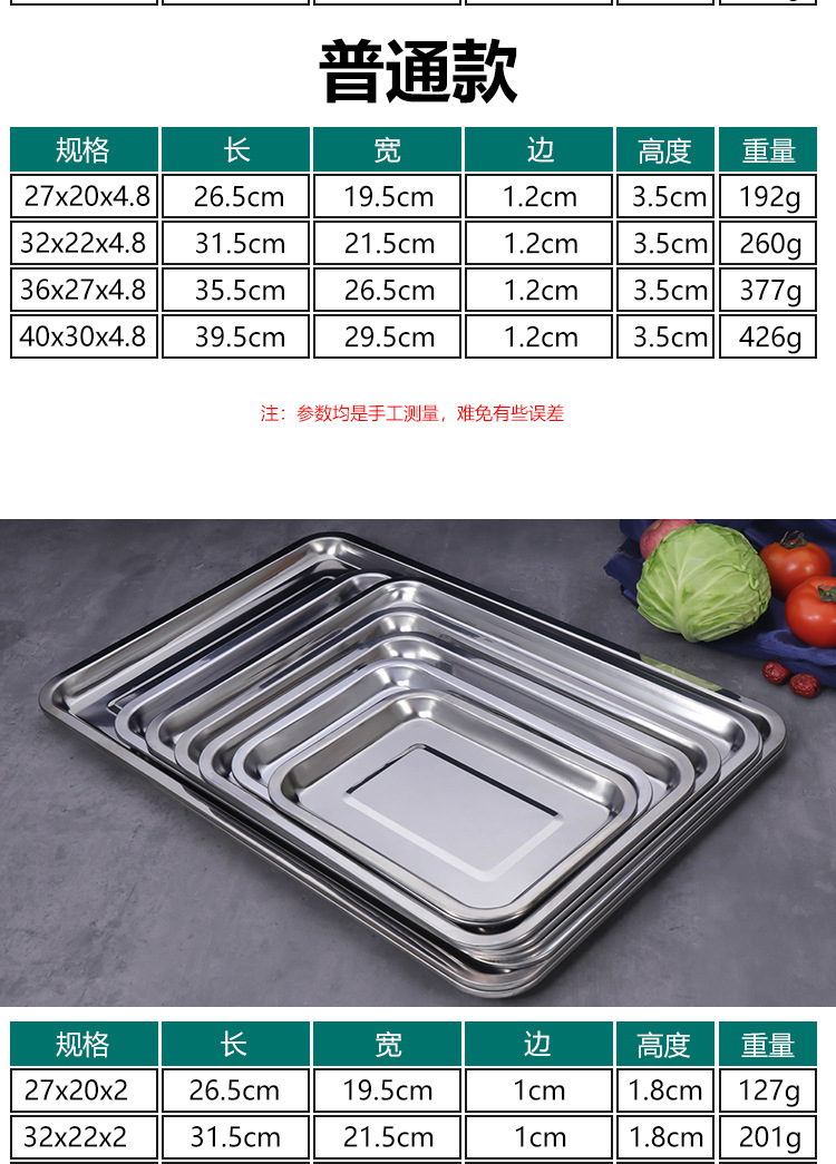 스테인레스 접시 트레이 직사각형 접시 사각 접시 생선 접시 바베큐 접시 깊은 접시 찜밥 상업용 가정용 만두 접시
