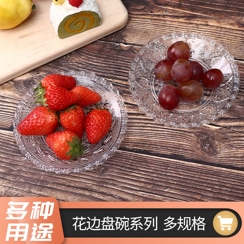 공장 공급 MP/MB/RBC 시리즈 레이스 유리 접시 과일 접시 과일 접시 원형 투명 재고 도매스토어 가기