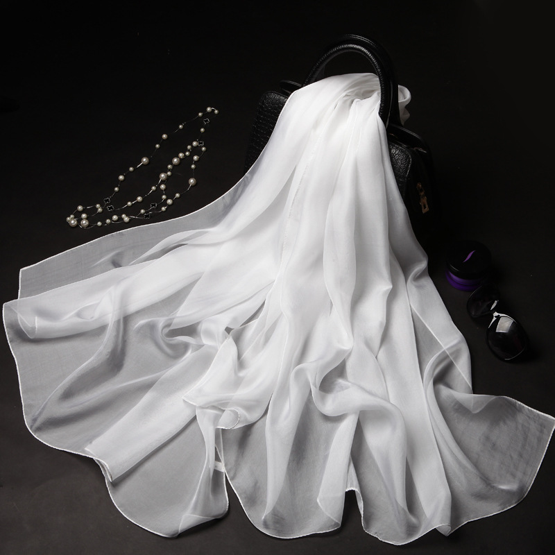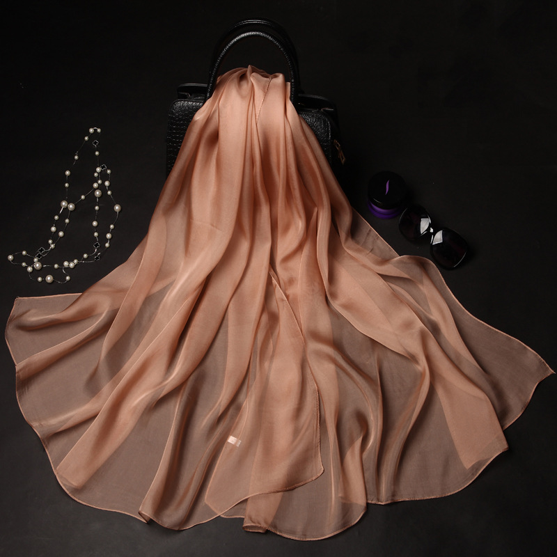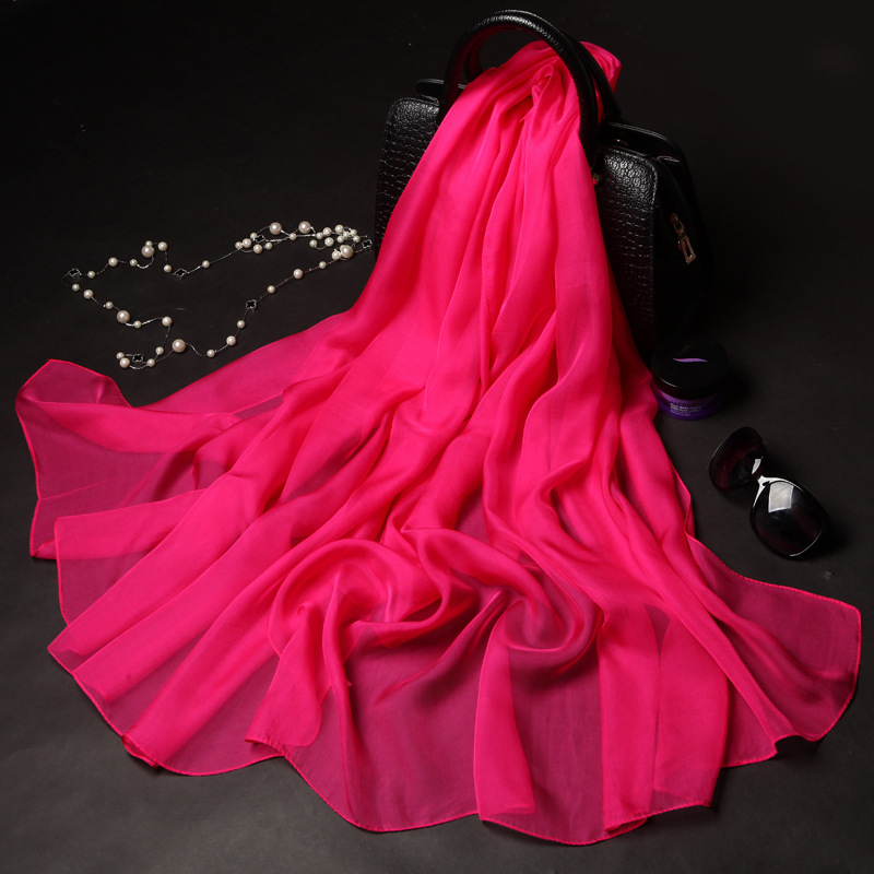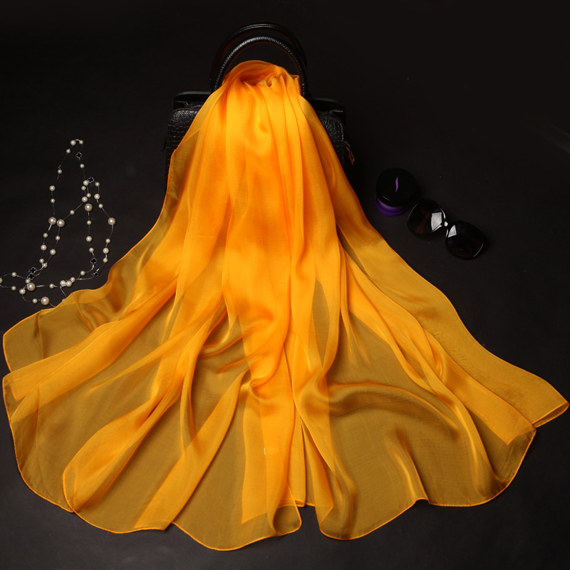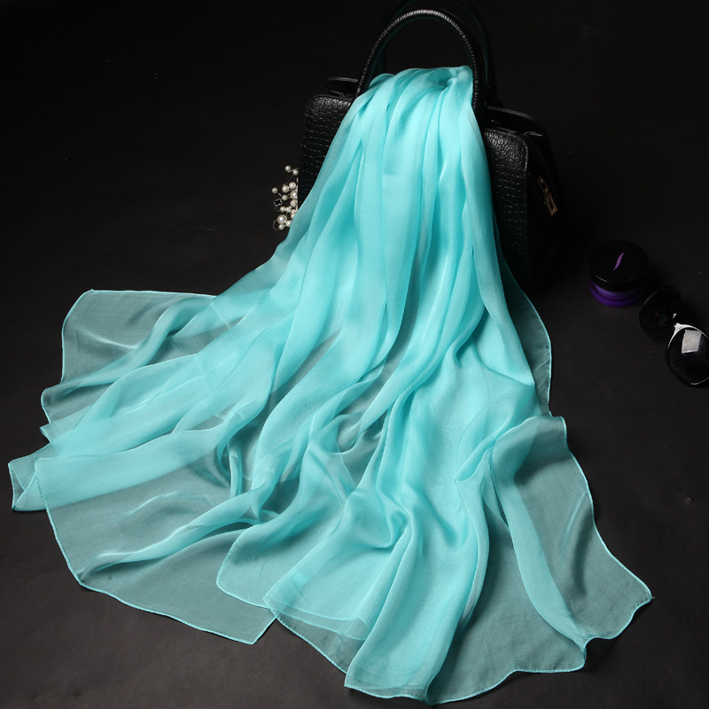 단색 실크 스카프 도매 여성의 봄과 여름 스카프 순수 뽕나무 실크 얇은 스카프 얇은 쉬폰 유럽과 미국의 새로운 스타일