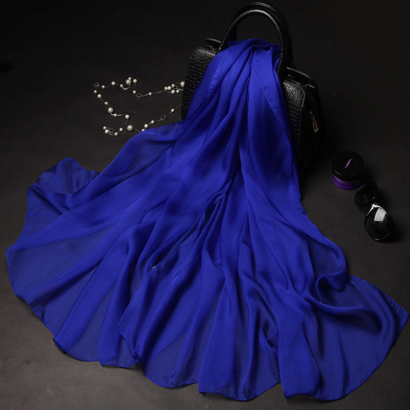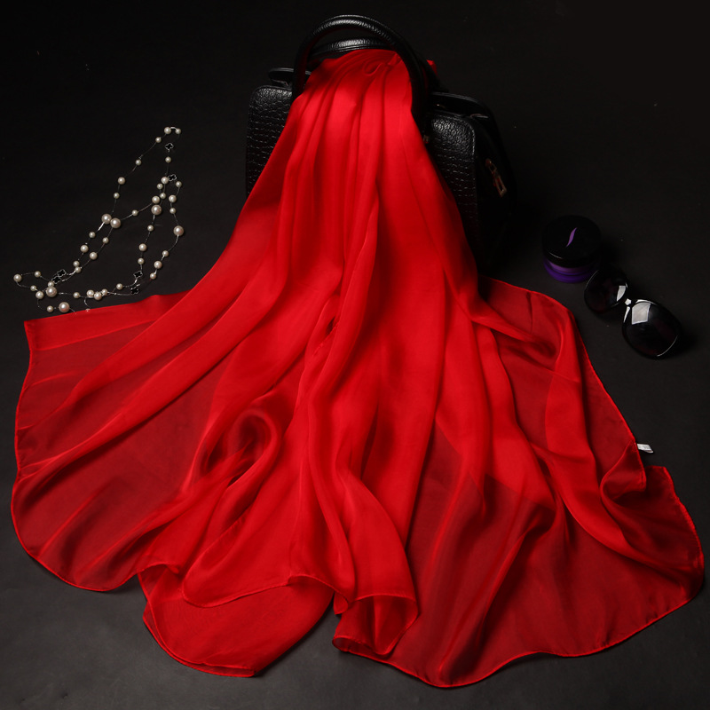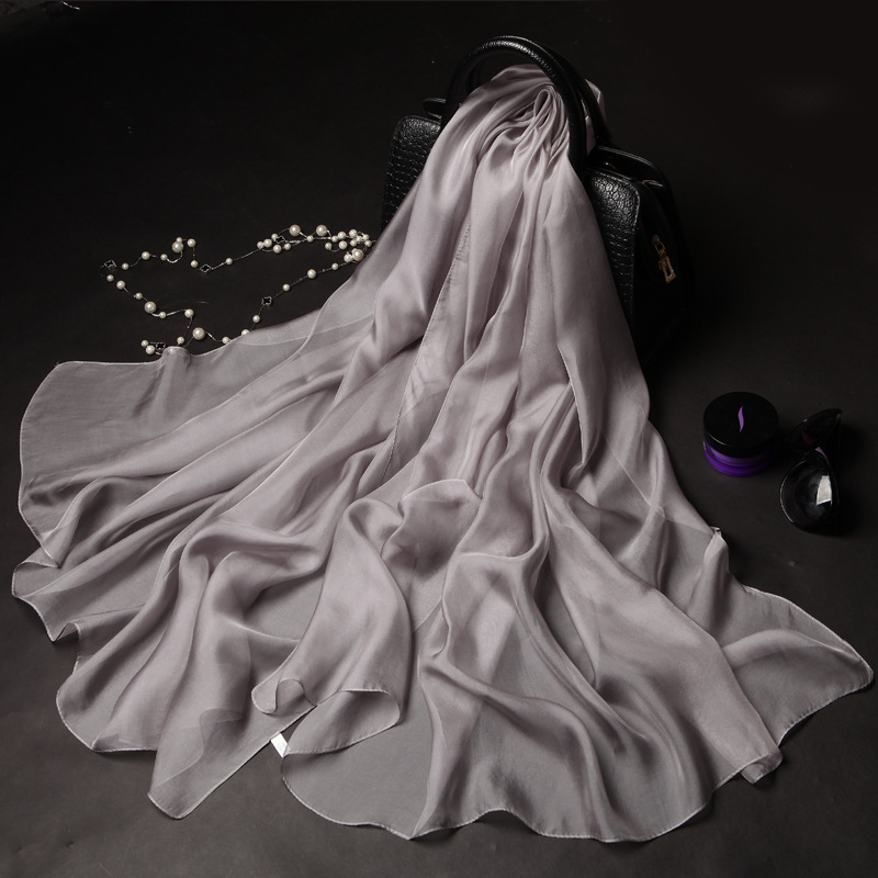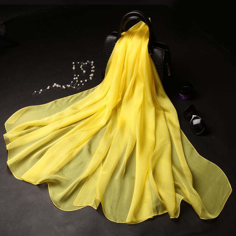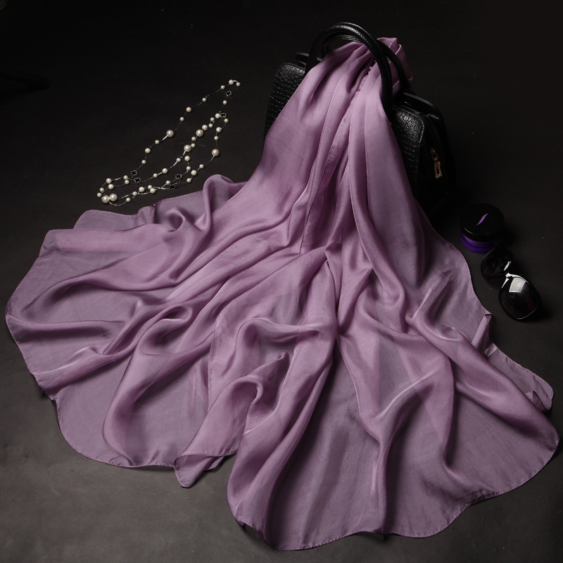 단색 실크 스카프 도매 여성의 봄과 여름 스카프 순수 뽕나무 실크 얇은 스카프 얇은 쉬폰 유럽과 미국의 새로운 스타일