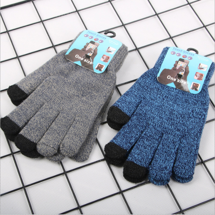 한 Qiu 겨울 니트 장갑 남성용 터치 스크린 장갑 여성용 브러시 두꺼운 다섯 손가락 터치 스크린 학생 사이클링스토어 가기
