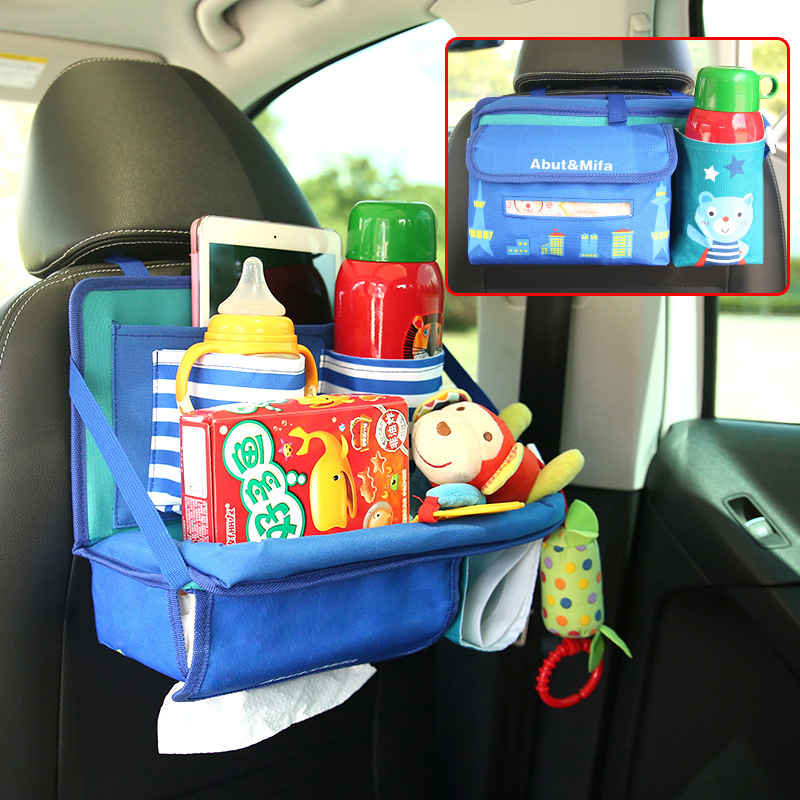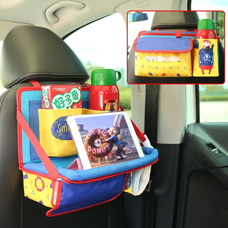 자동차 식탁 뒷좌석 접이식 작은 식탁 자동차 어린이 식판 만화 다기능 의자 다시 물 컵 홀더 보관 가방스토어 가기