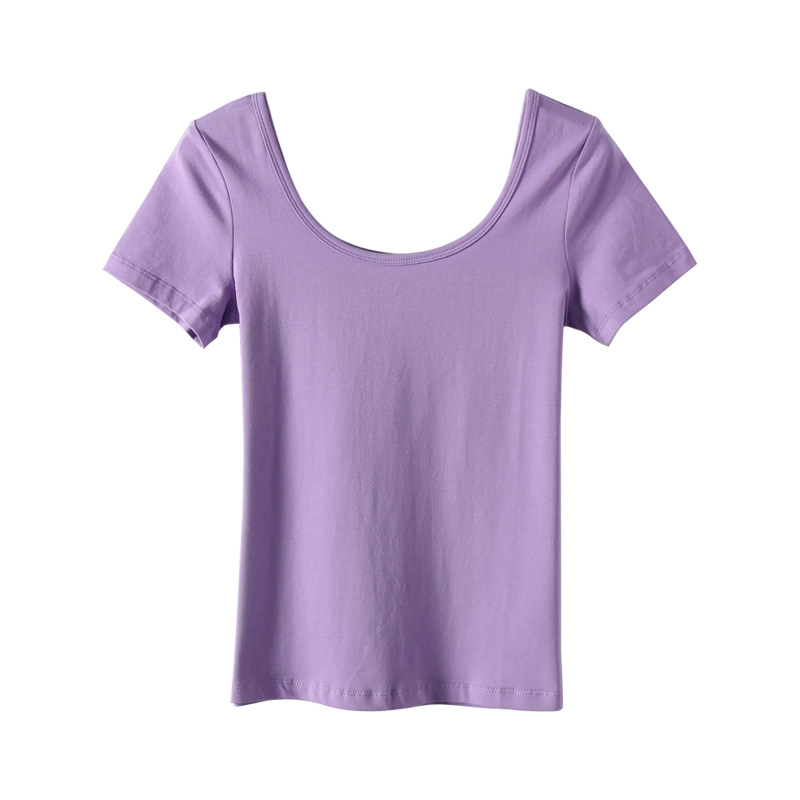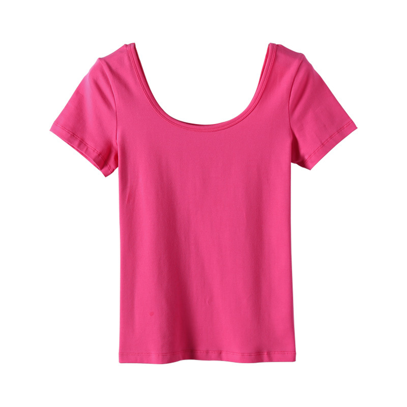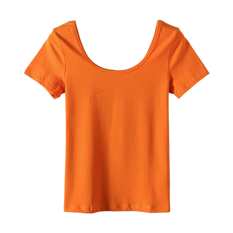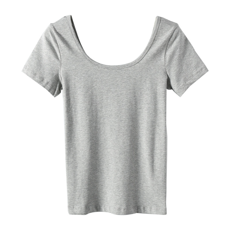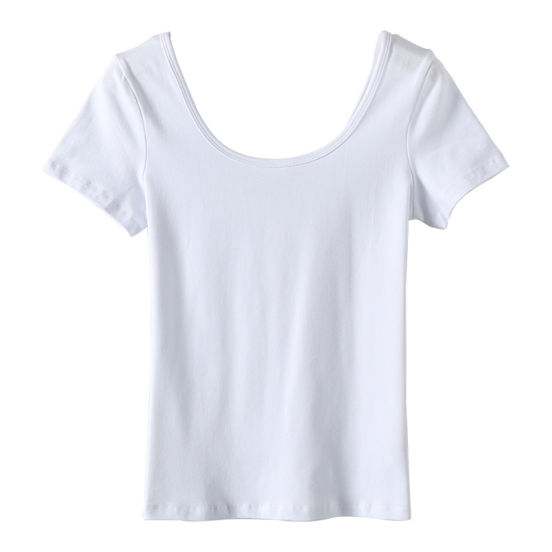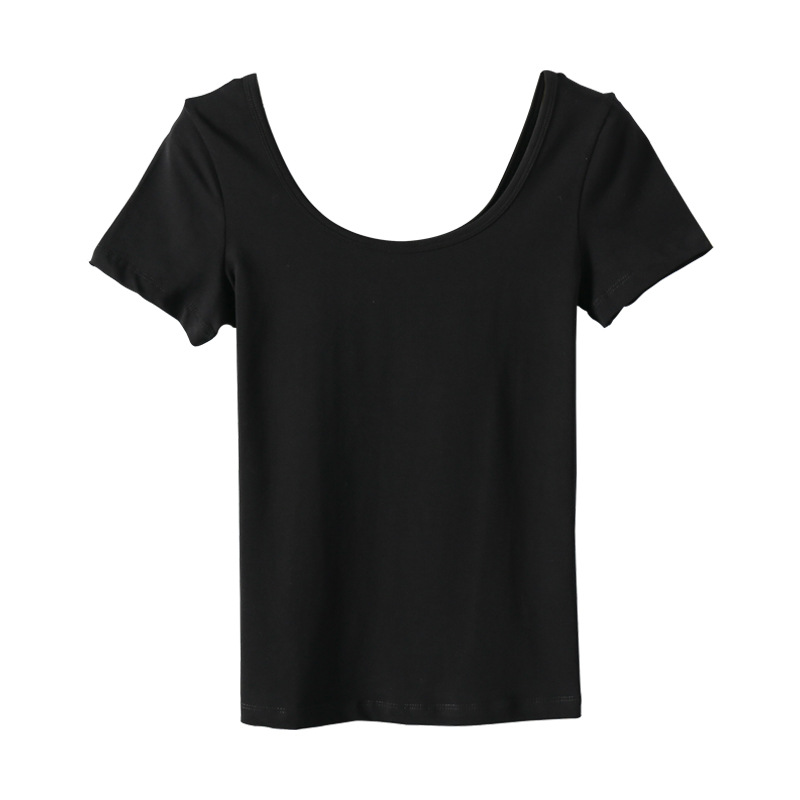 2023 새로운 단색 티셔츠 여성용 반팔 한국 슬림 쇼트 코트 U 칼라 셔츠 베이스 셔츠 003 세대스토어 가기