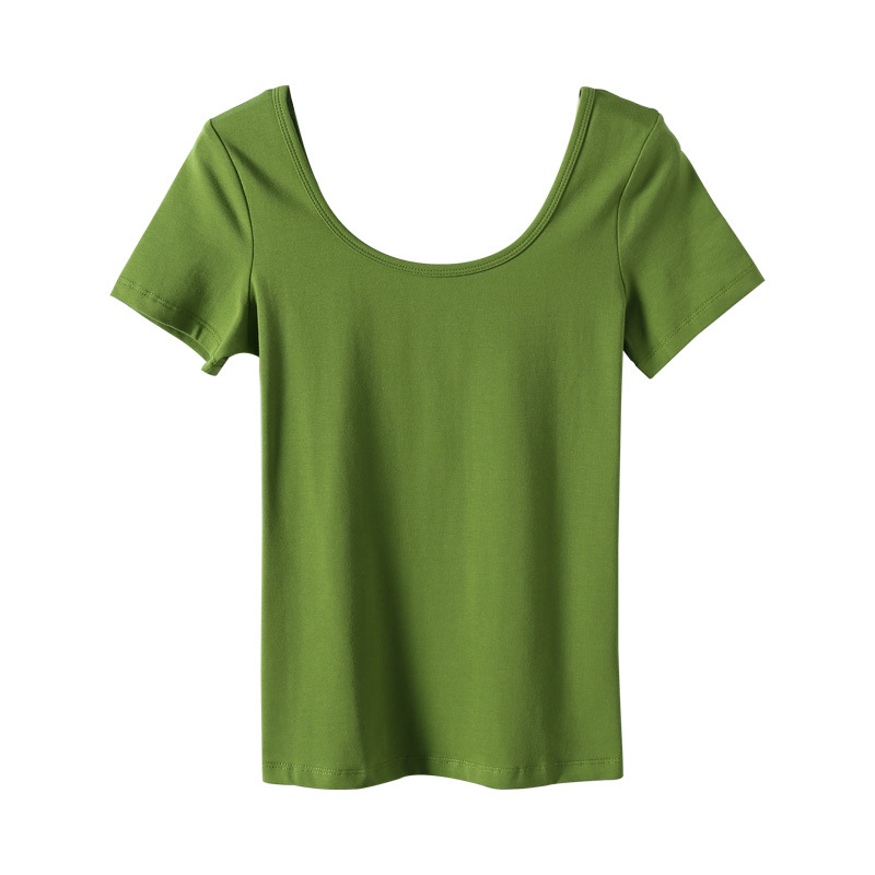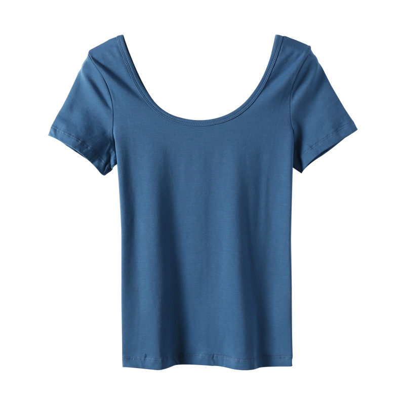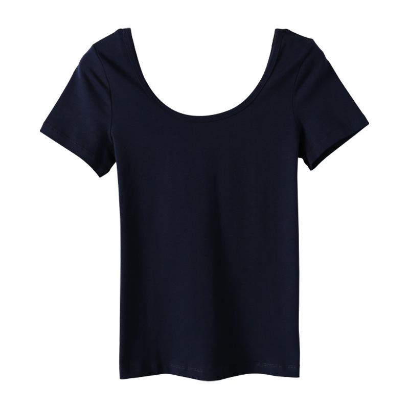 2023 새로운 단색 티셔츠 여성용 반팔 한국 슬림 쇼트 코트 U 칼라 셔츠 베이스 셔츠 003 세대