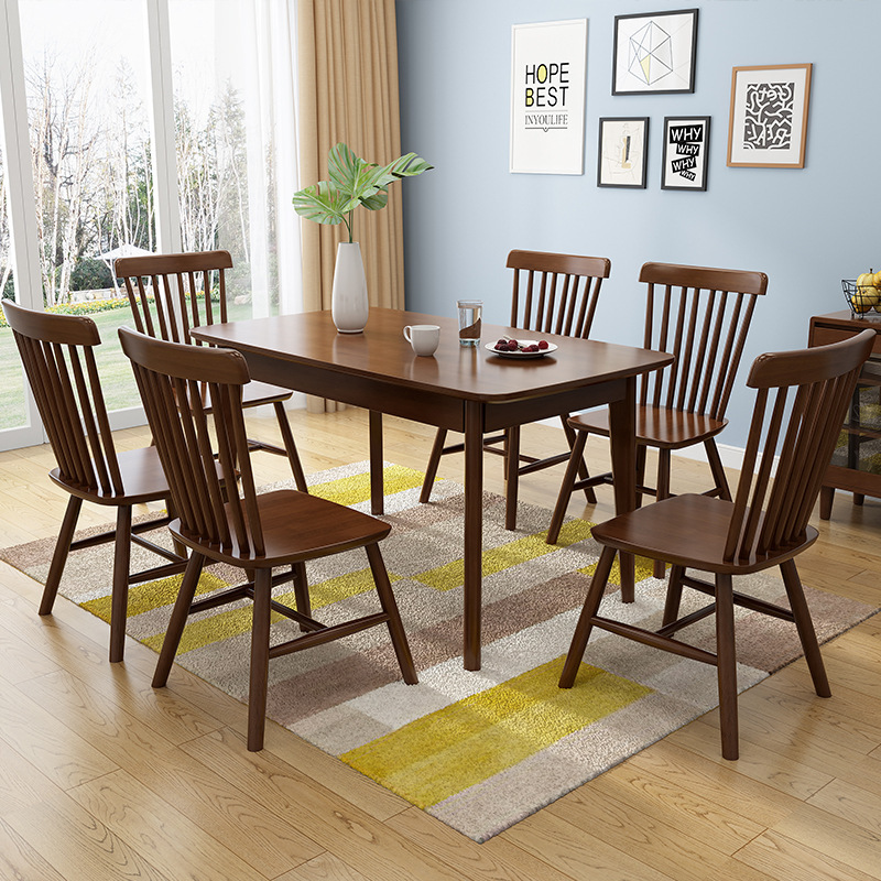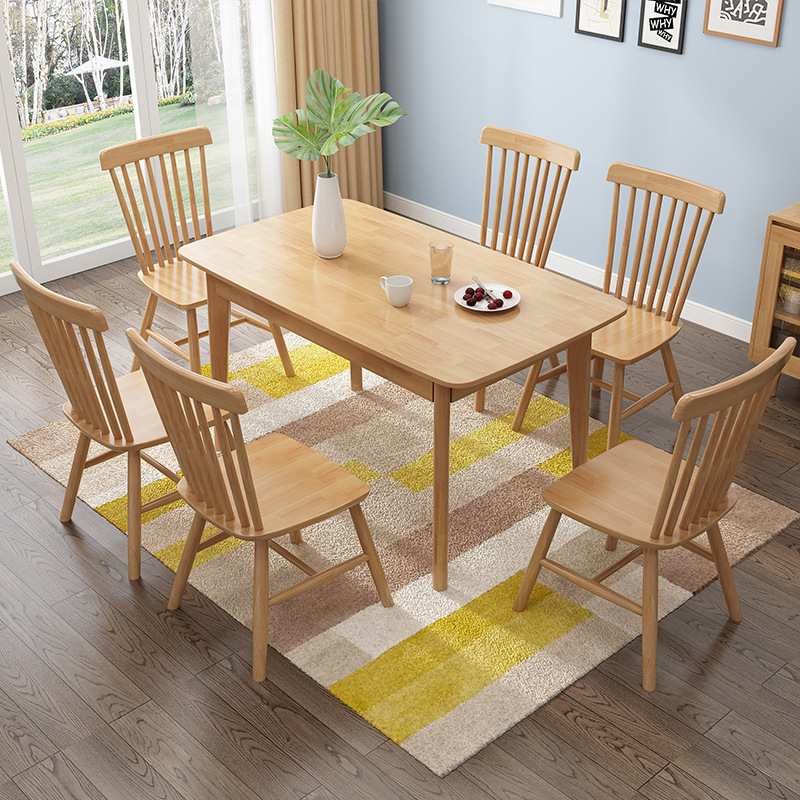 단단한 나무 북유럽 식탁과 의자 조합 단단한 나무 거실 식당 가구 직사각형 작은 아파트 머리카락의 세대스토어 가기