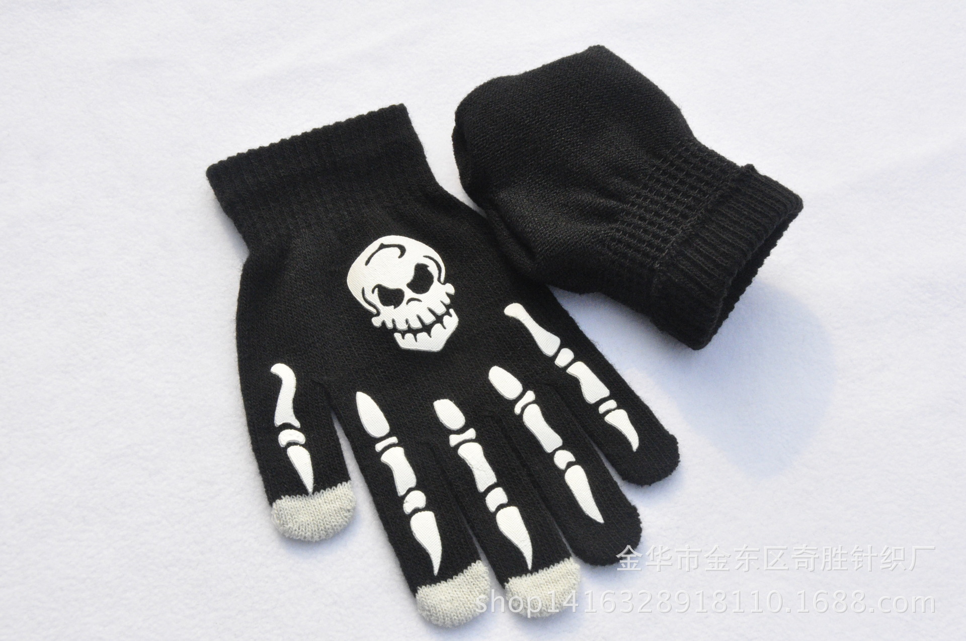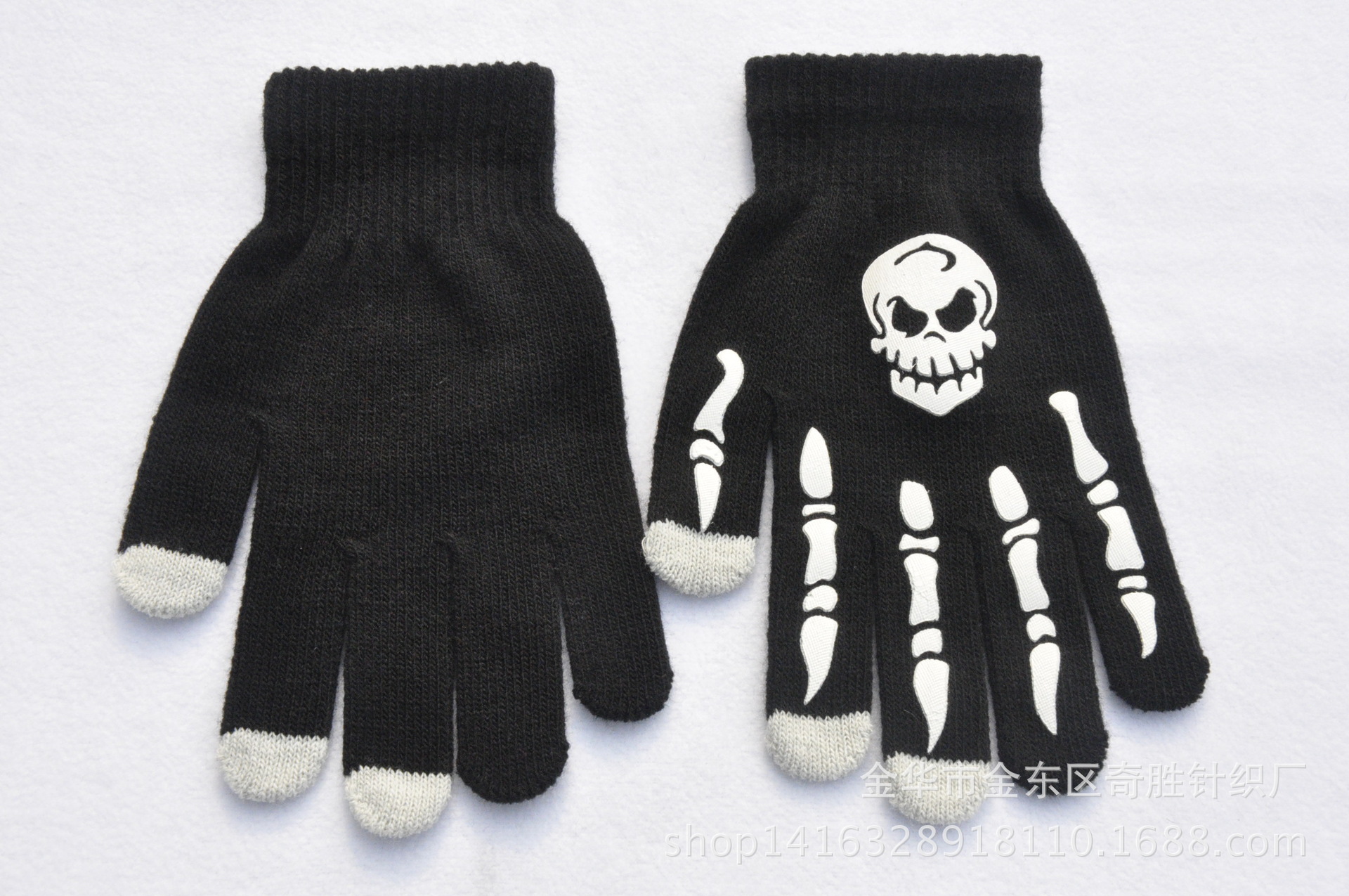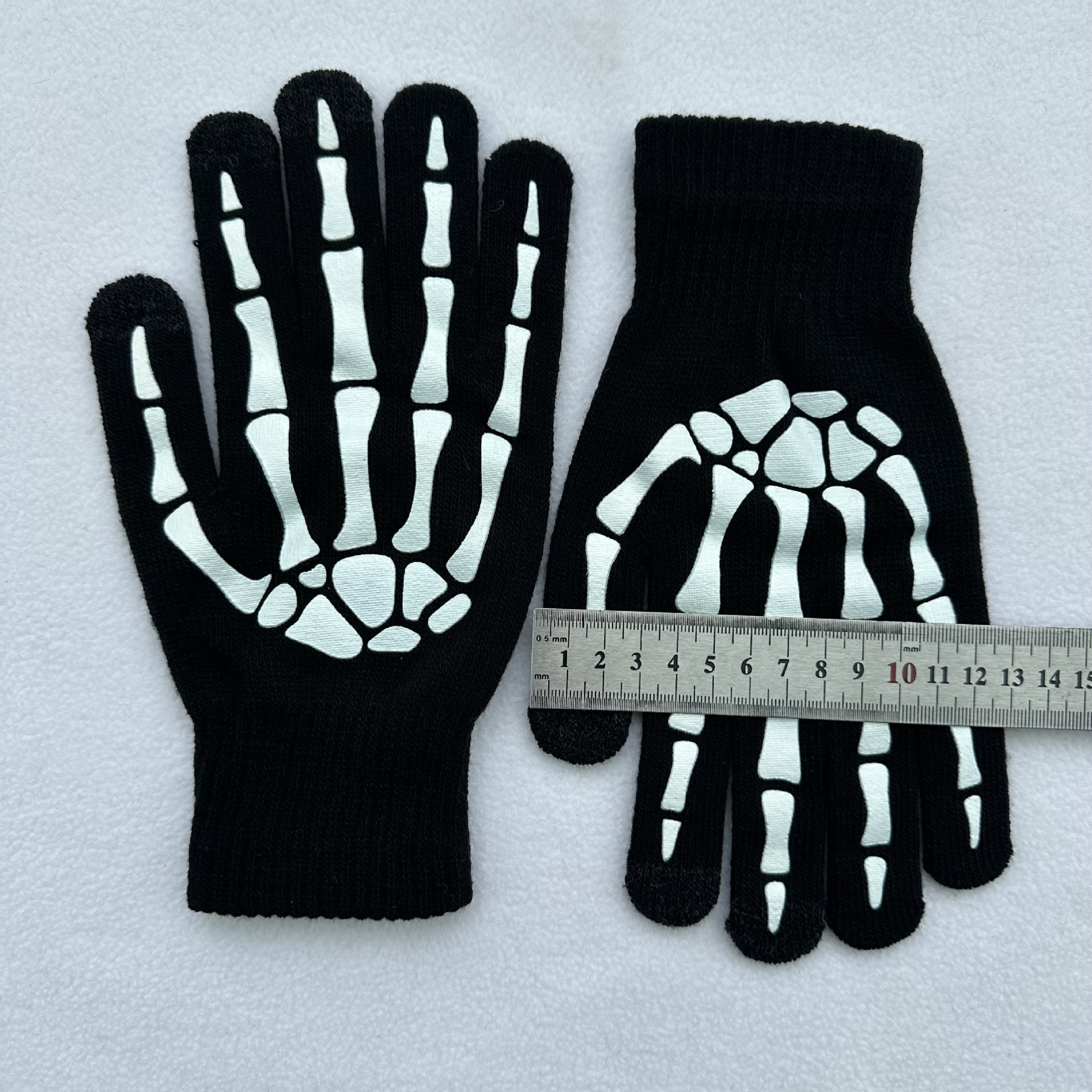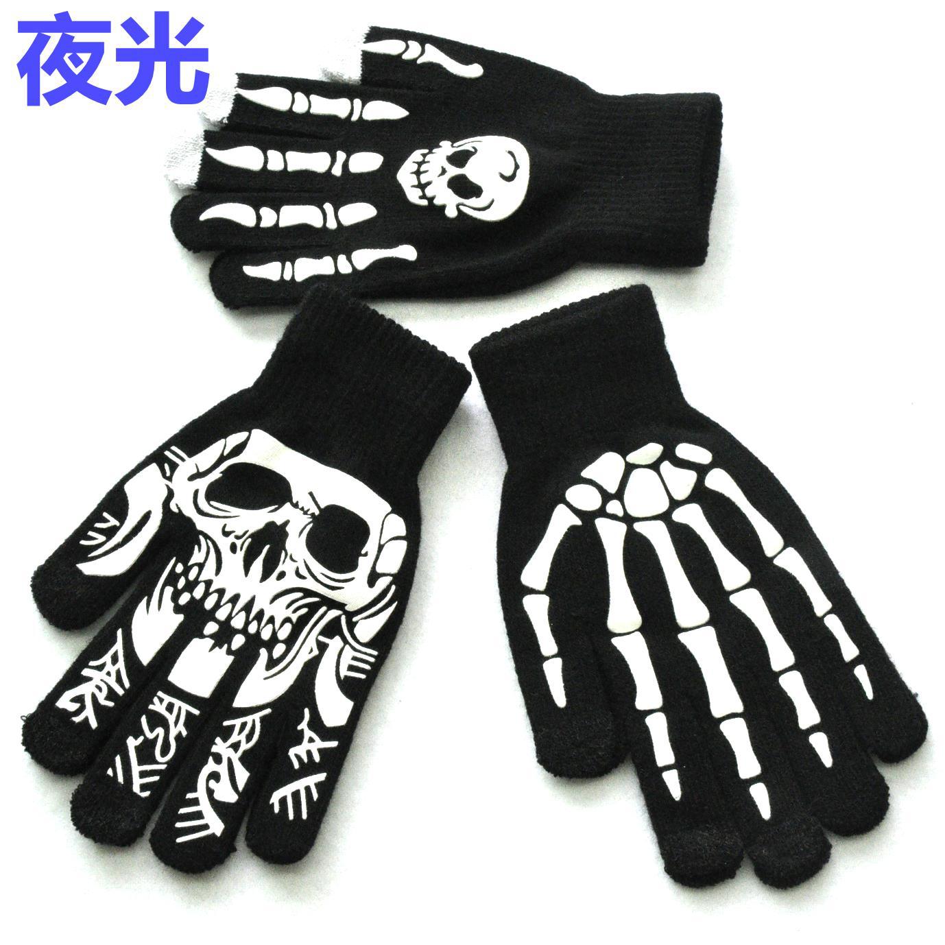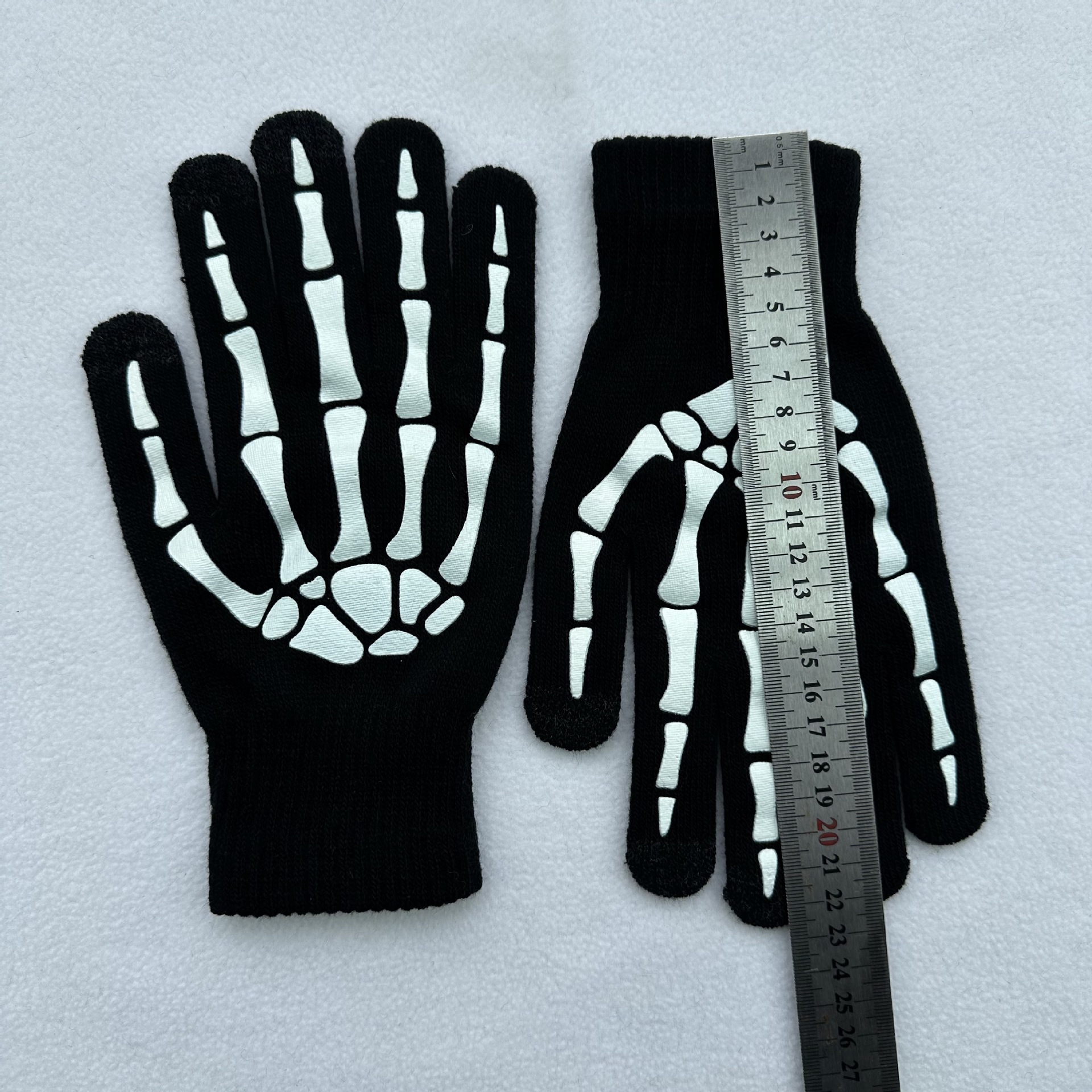 성인 할로윈 해골 유령 발톱 인쇄 형광 발광 장갑 야외 승마 따뜻한 니트 장갑