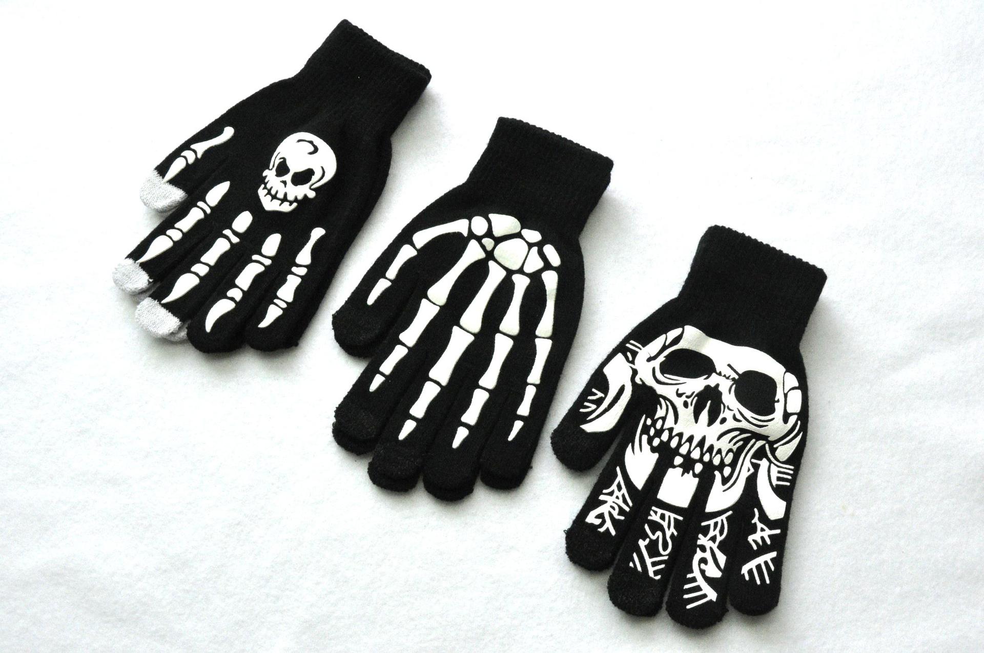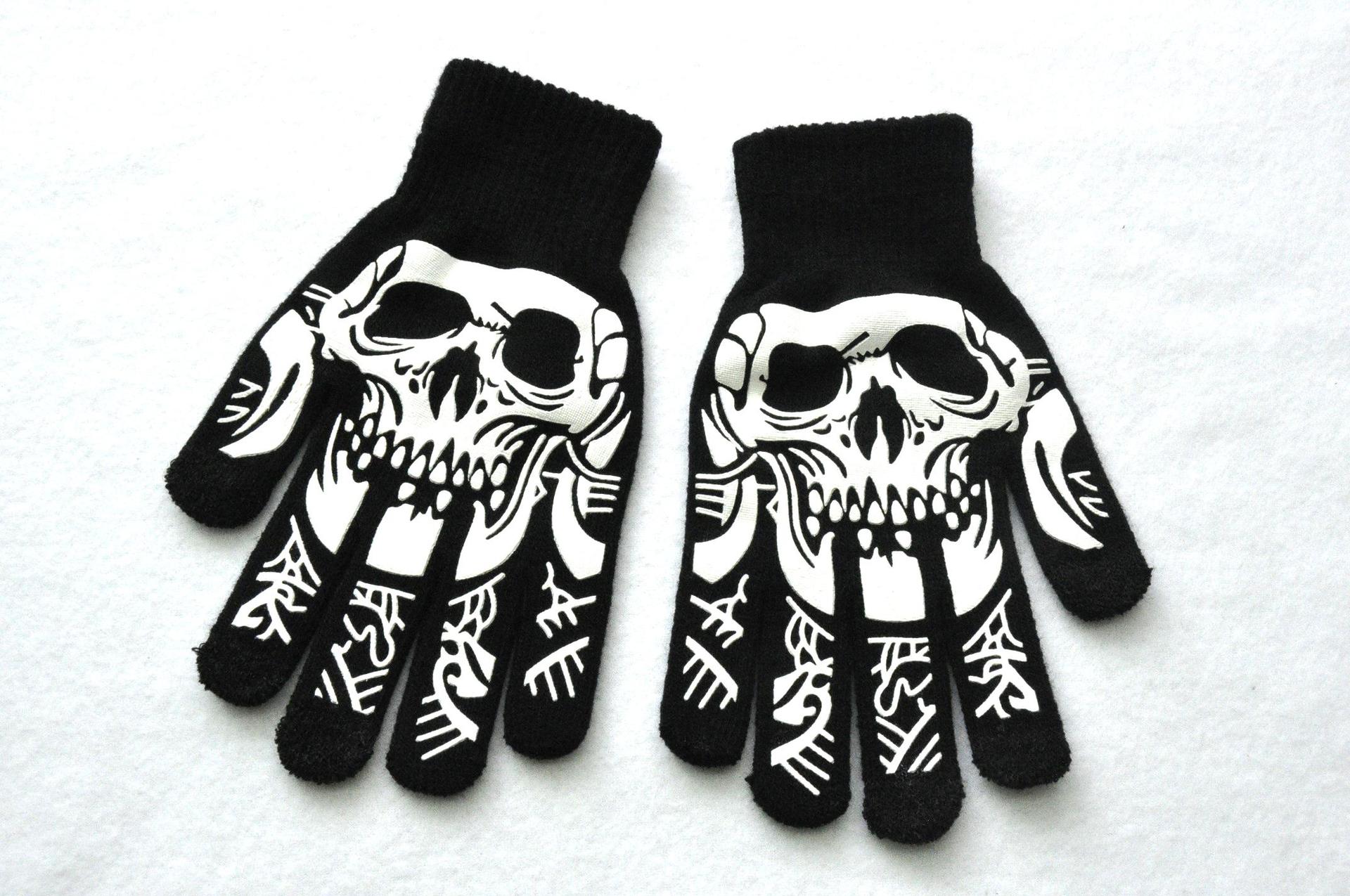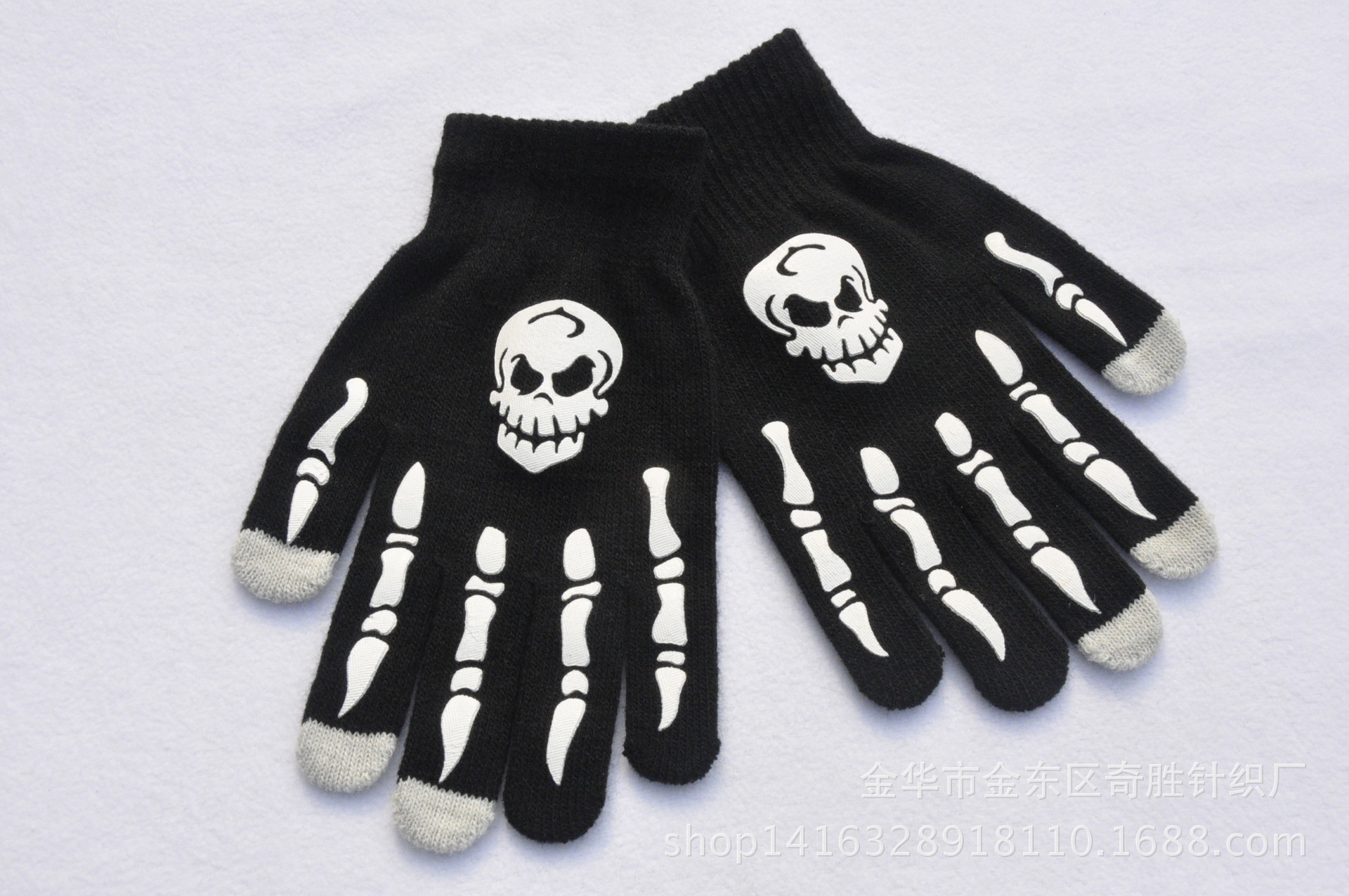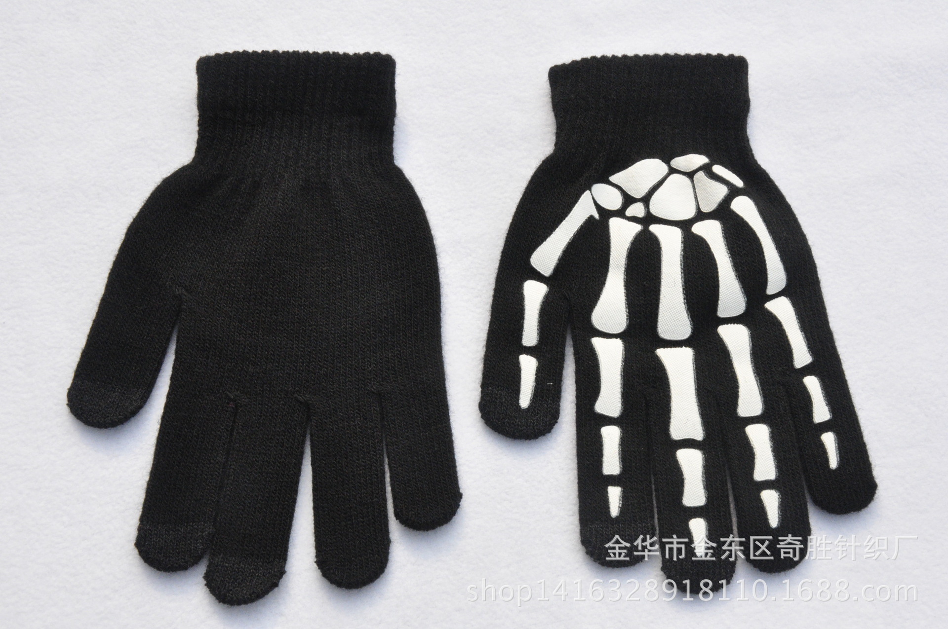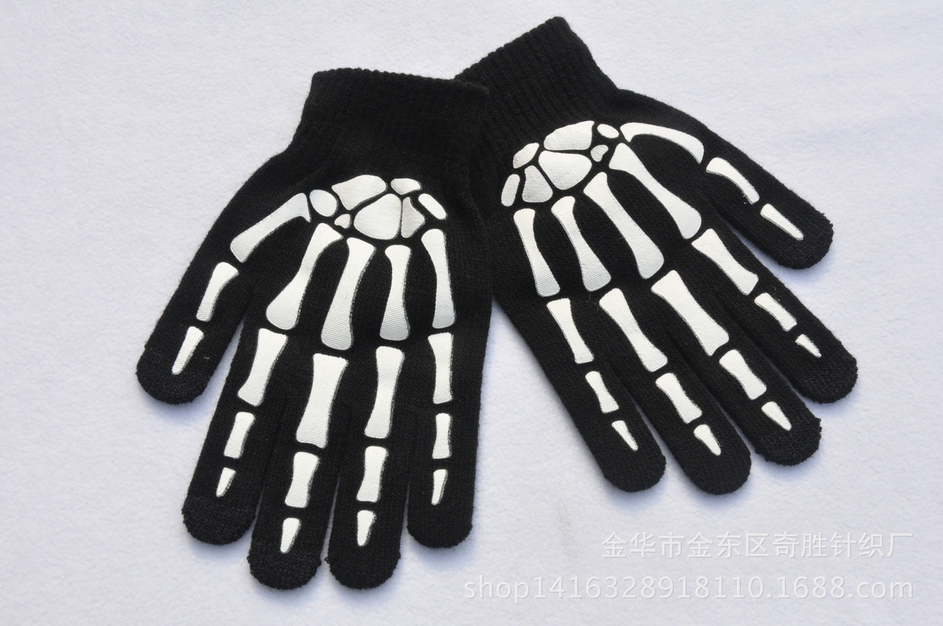 성인 할로윈 해골 유령 발톱 인쇄 형광 발광 장갑 야외 승마 따뜻한 니트 장갑