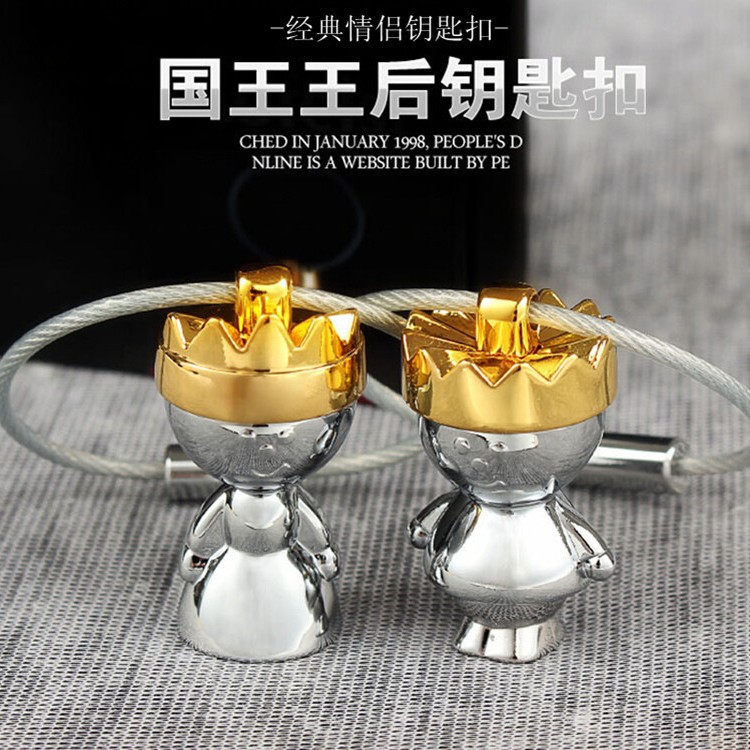 厂家现货高档钢丝绳双色电镀卡通人物国王皇后 皇帝皇后 皇冠情侣饰品钥匙扣(出口品质)