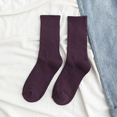 수출 한국 가을과 겨울 커플 테리 양말 단색 빗면 더미 양말 남자 양말 여자 양말 수건 양말 도매