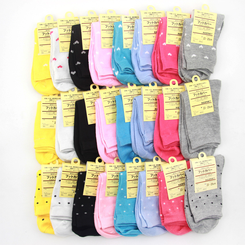 숙녀 폴리 에스테르 면 양말 제조 업체 도매 귀여운 사탕 컬러 튜브 사랑 단색 다이아몬드 다양한 스톨 양말스토어 가기