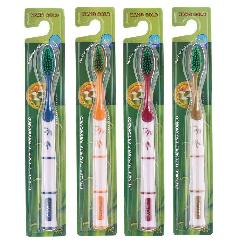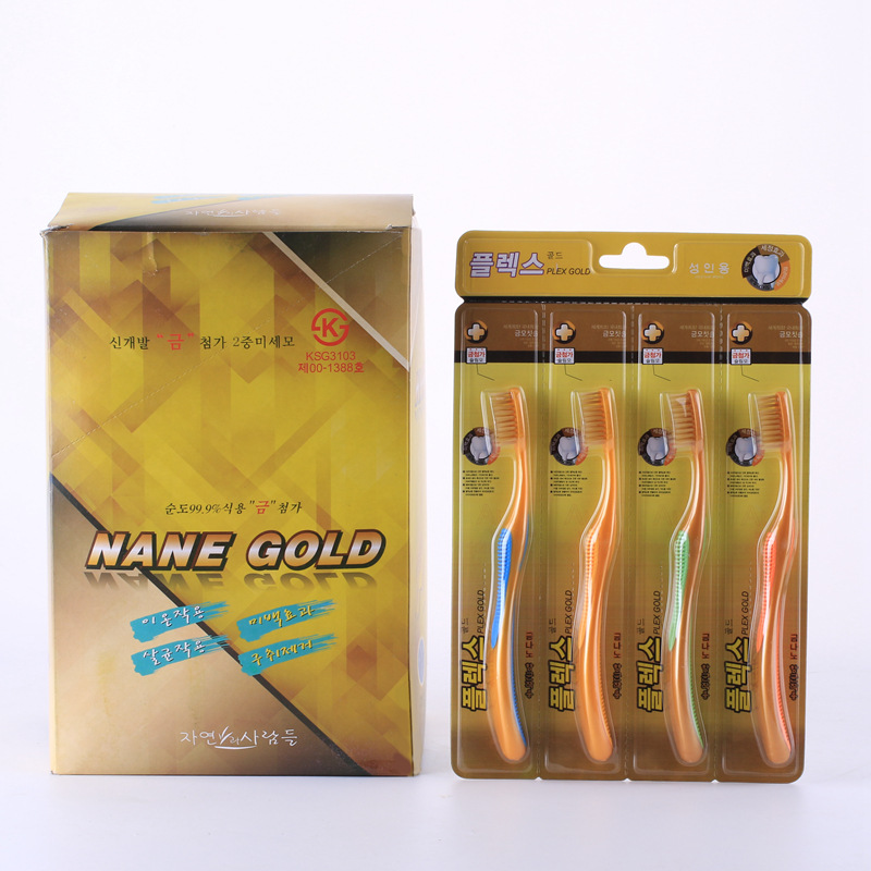 NANO 가족 한국 뜨거운 부드러운 강모 칫솔 미끄럼 방지 두꺼운 손잡이 황금 강모 칫솔 z0008