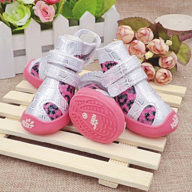 새로운 레오파드 프린트 PU 가죽 애완동물 신발 겨울용 테디 강아지 신발 미끄럼 방지 푸들 슈나우저 부드러운 밑창 강아지용