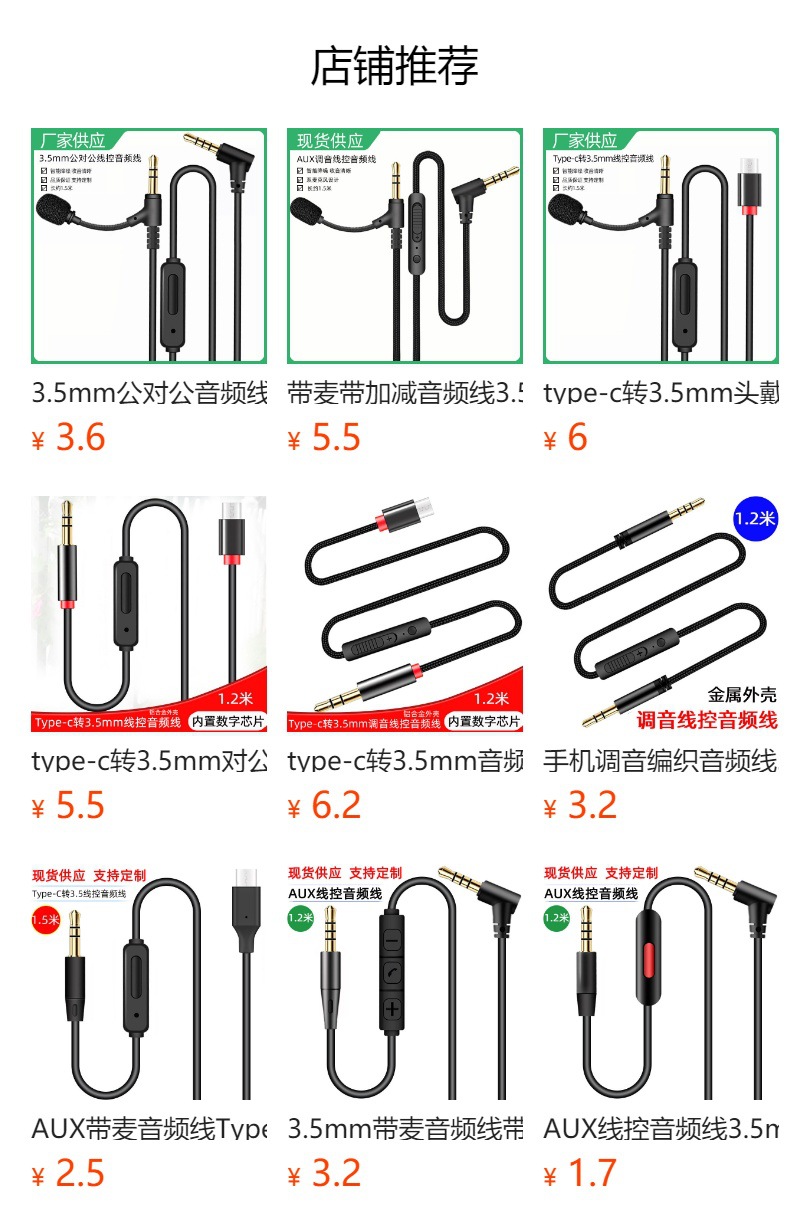 3.5mm 남성-남성 마이크가 있는 오디오 케이블, 4/6급 헤드폰, 휴대폰, 차량용 오디오 연결 케이블스토어 가기