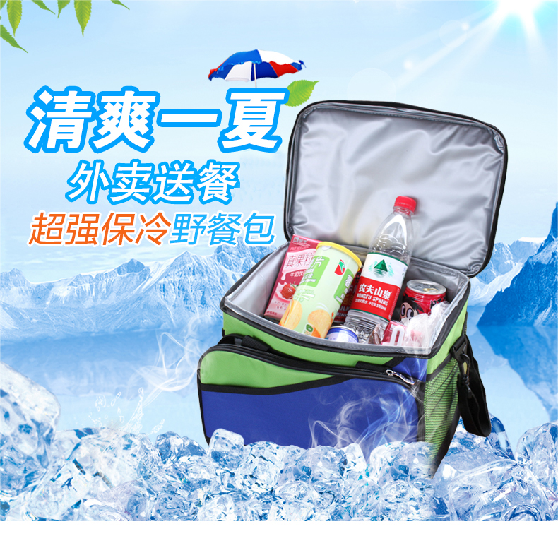 保温包、冰袋、冰包、也称无源冰箱,是一种具有高隔热、恒温效果的包 (具有冬暖夏凉作用),多用途保冷、保温、保鲜,采用优质材料制作,方便携带,适合喜欢驾车旅行、假日郊游、家庭野餐时使用,产品内层为珍珠棉覆合铝箔反光隔热层,提供良好的保温隔热效果,从此您可以在车上、户外携带冰镇饮料、冷饮等,不必再忍受温热的饮品!