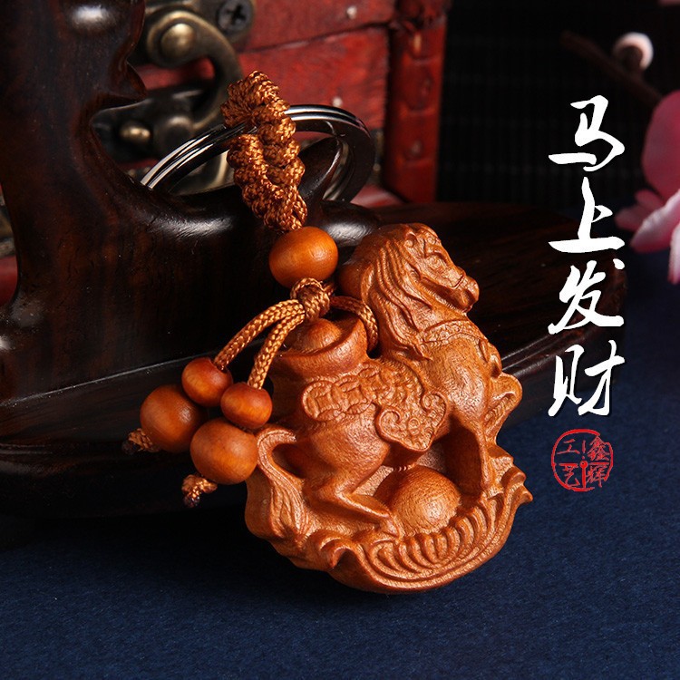 | 汽车挂件桃木精雕立体招财貔貅观音保平安弥勒挂件车内饰品挂饰品 | |