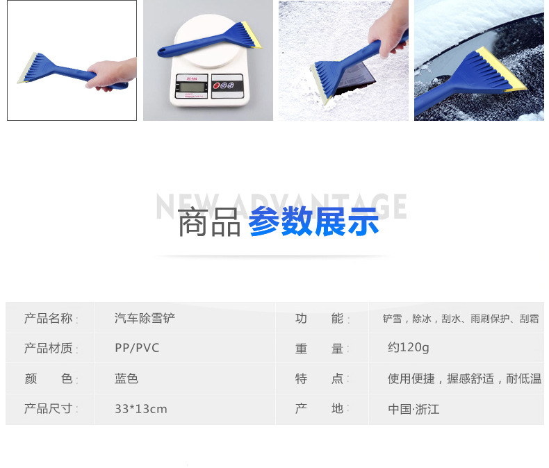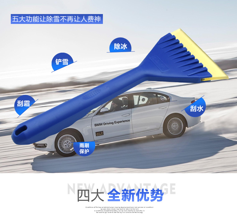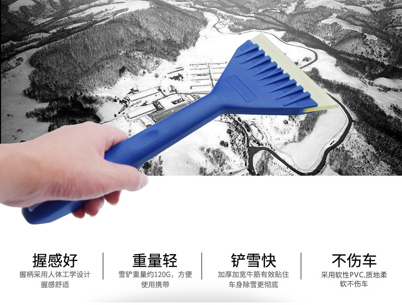 特点:铲冰除雪,雨刷除冰,不划伤车漆;手柄粗壮,除雪更有力。