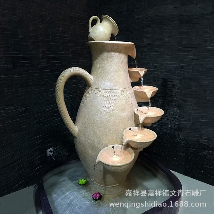 황녹 돌 물 그릇 벽형 조디악 동물 분수 실내 황금 마 물 장식품 무료 전송 구멍스토어 가기