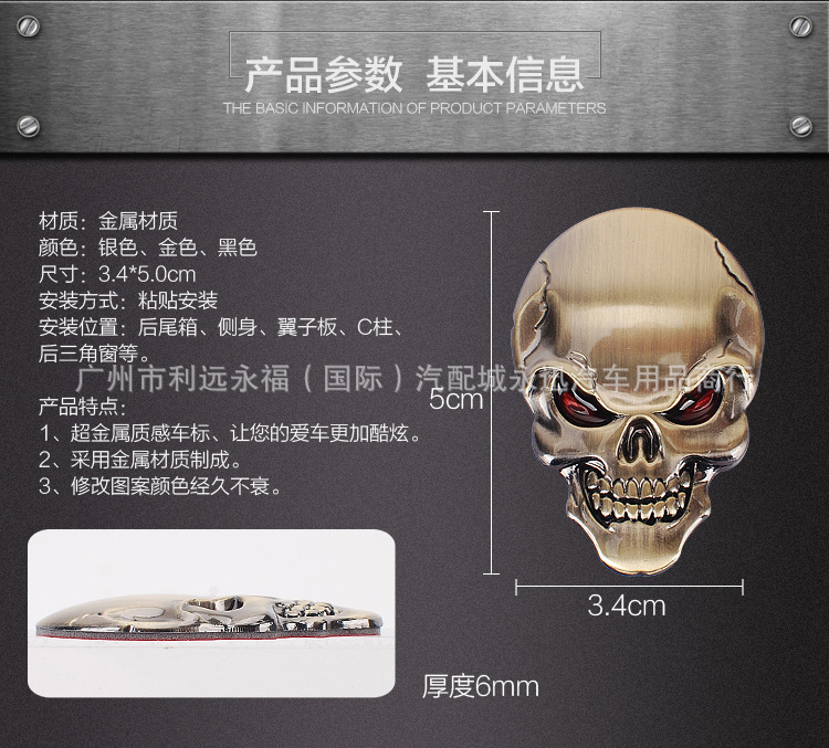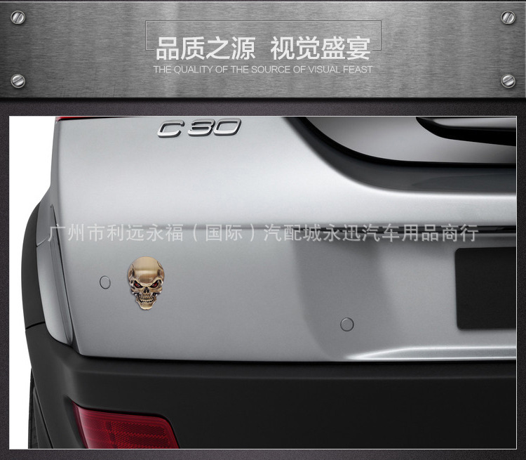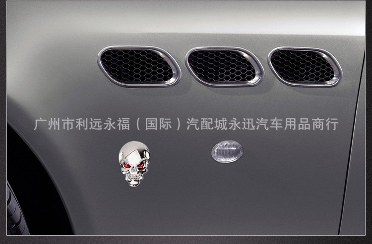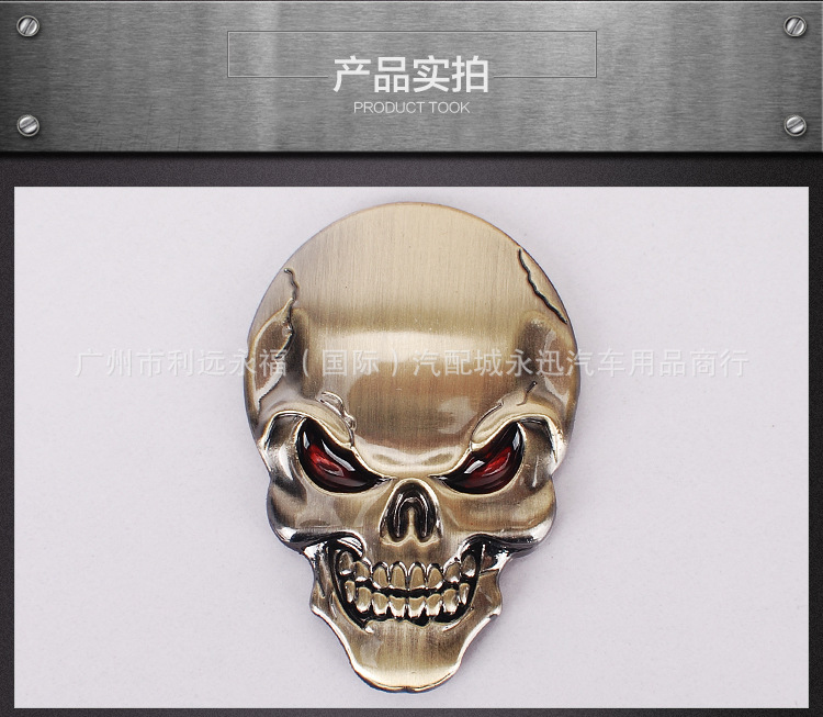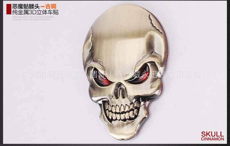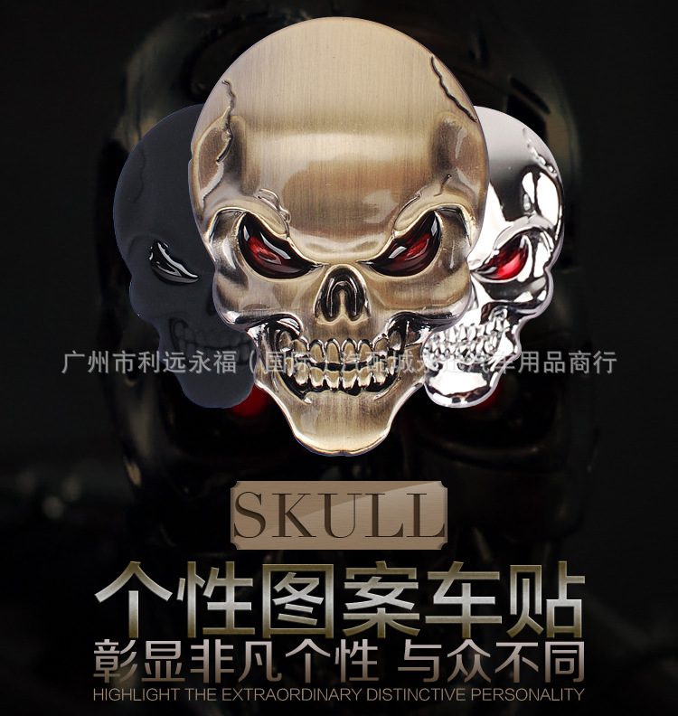 자동차 금속 해골 스티커 자동차 바디 스티커 빨간 눈 유령 머리 스티커 수직 자동차 꼬리 스티커 수정 장식 스티커스토어 가기