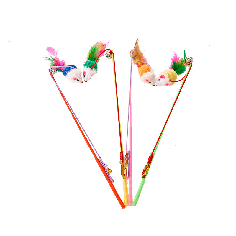 애완 동물 용품 아마존 폭발 색상 토끼 모피 마우스 고양이 장난감 벨 깃털 고양이 장난감스토어 가기
