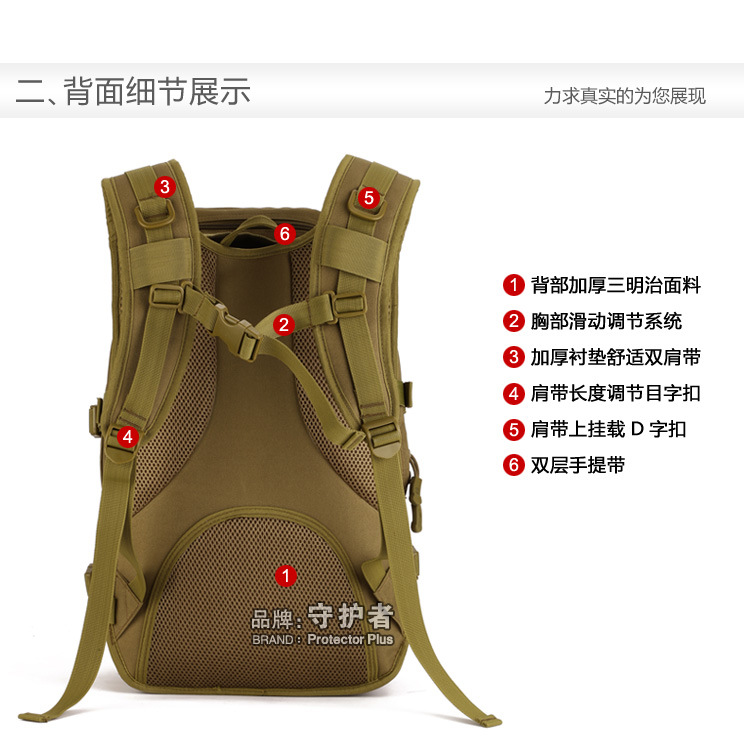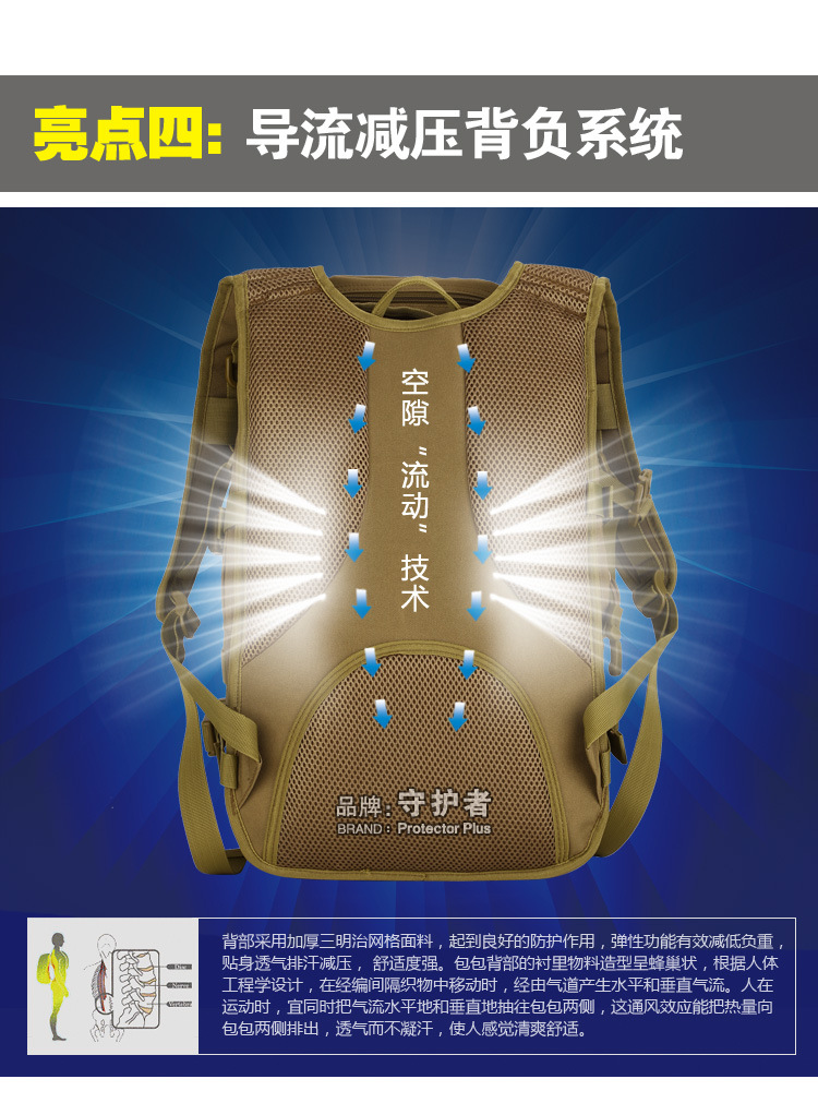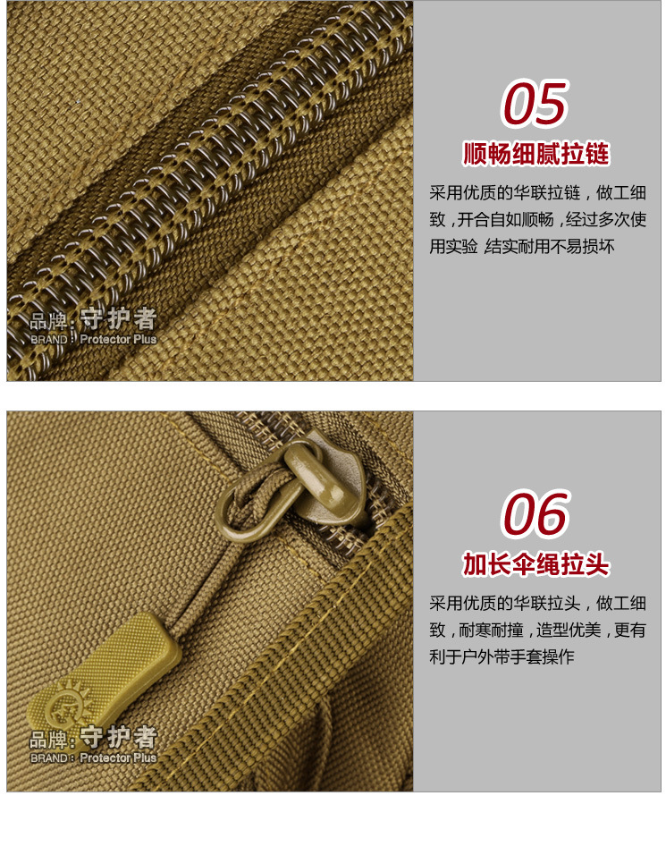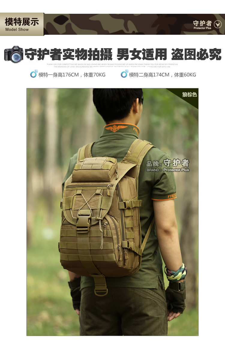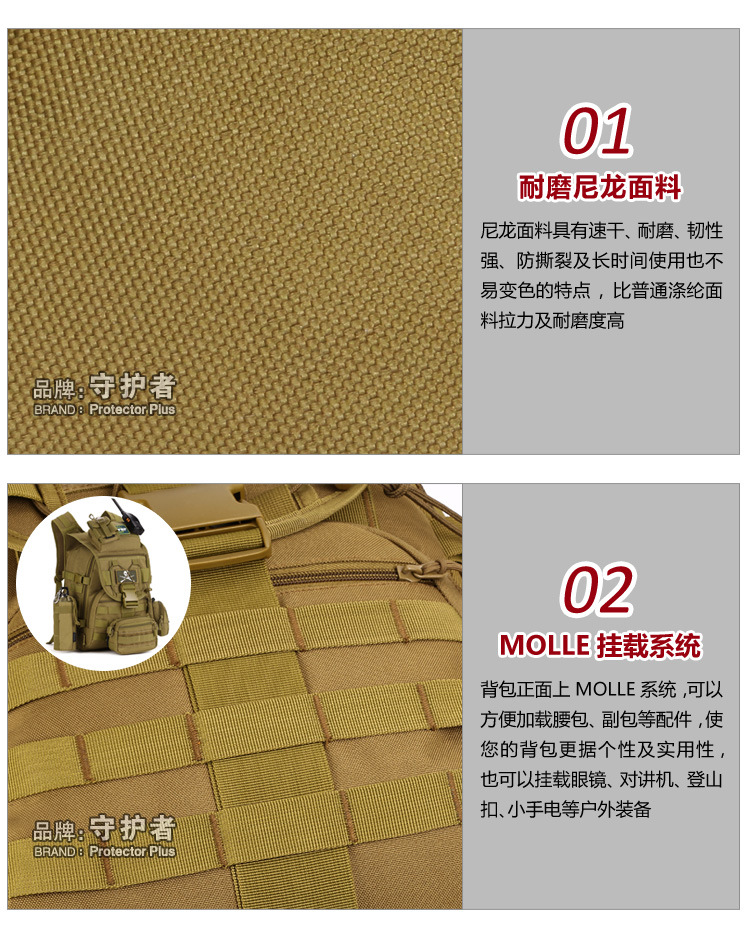 守护者箱包厂是一家专业设计、生产、销售户外背包、腰包、胸包、斜挎包、腰带、背心等产品的诚信经营商家。守护者箱包厂拥有完整、科学的质量管理体系。自设有生产工厂,多名老员工在户外产品领域有着丰富的设计、生产经验,所有材料和配件均质量上乘符合相关标准,我们秉承专业敬业的精神,为客户提供好的产品和服务等优势占有市场,在产品的设计、包装、质量上不断的提升,获得大批客户的认可,产品远销海外。守护者箱包厂专门为国内外贸易公司、实体店、国内外网上店铺(速卖通、EBAY、WISH、亚马逊、天猫,淘宝C店,京东,拍拍)、军迷户外用品商家、箱包行业创业者等供应大量现货。本厂拥有守护者/Protector Plus户外品牌,考虑部分老客户拥有自主品牌,我们的产品除了吊牌没有任何中文标示、您可自定义品牌;并接受来样加工生产、贴牌、定制等,如有任何问题可在线联系我们客服旺旺,如果您对我们的产品有任何感受、想法或建议,欢迎随时提出!
