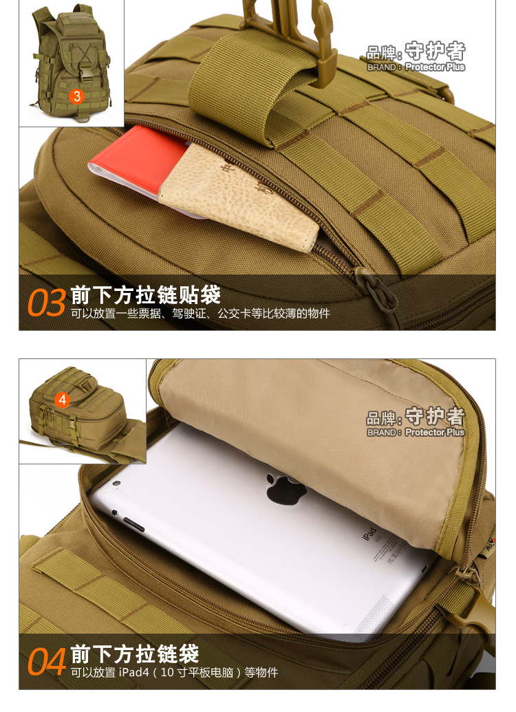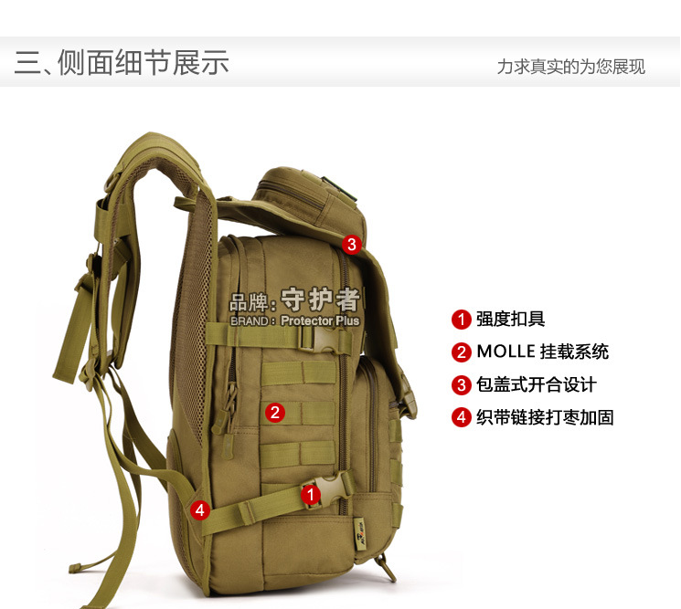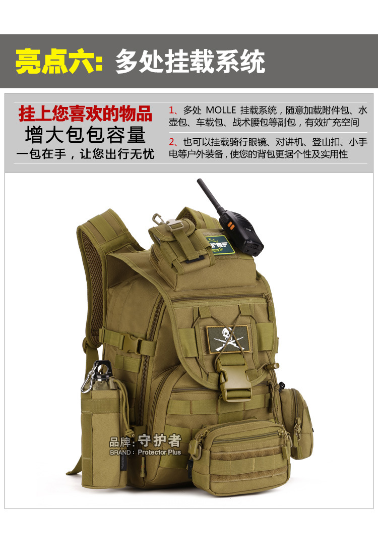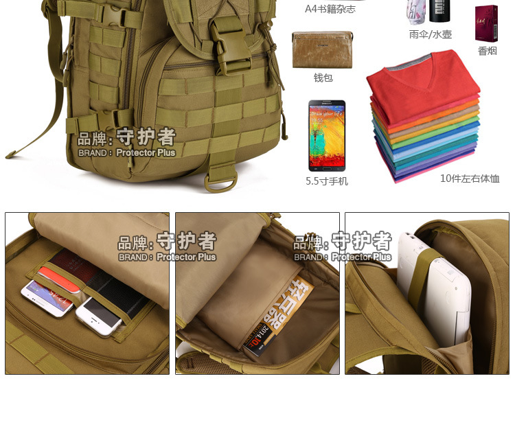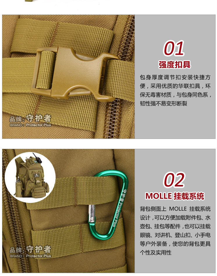守护者箱包厂是一家专业设计、生产、销售户外背包、腰包、胸包、斜挎包、腰带、背心等产品的诚信经营商家。守护者箱包厂拥有完整、科学的质量管理体系。自设有生产工厂,多名老员工在户外产品领域有着丰富的设计、生产经验,所有材料和配件均质量上乘符合相关标准,我们秉承专业敬业的精神,为客户提供好的产品和服务等优势占有市场,在产品的设计、包装、质量上不断的提升,获得大批客户的认可,产品远销海外。守护者箱包厂专门为国内外贸易公司、实体店、国内外网上店铺(速卖通、EBAY、WISH、亚马逊、天猫,淘宝C店,京东,拍拍)、军迷户外用品商家、箱包行业创业者等供应大量现货。本厂拥有守护者/Protector Plus户外品牌,考虑部分老客户拥有自主品牌,我们的产品除了吊牌没有任何中文标示、您可自定义品牌;并接受来样加工生产、贴牌、定制等,如有任何问题可在线联系我们客服旺旺,如果您对我们的产品有任何感受、想法或建议,欢迎随时提出!