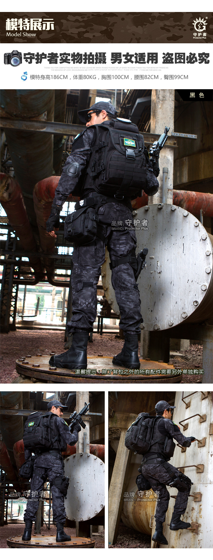 【产品颜色】黑色、狼棕、沙漠数码、ACU数码、丛林数码、CP迷彩、黑蝎迷彩
