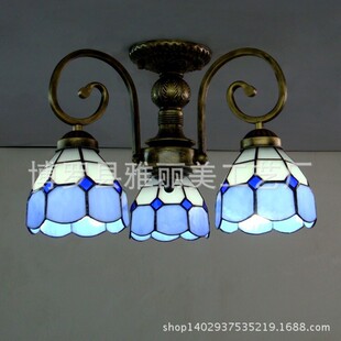 *材料:灯罩由彩色融合艺术玻璃镶嵌焊接而成,全部手工制作.仿古铁艺白色.黑色.古铜色五金灯架,底盘铁质材料;
