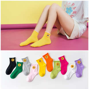 炫雅花朵袜子立体小花袜 ins潮学生甜美卷边松口糖果色短袜 女袜 RMB:3.1