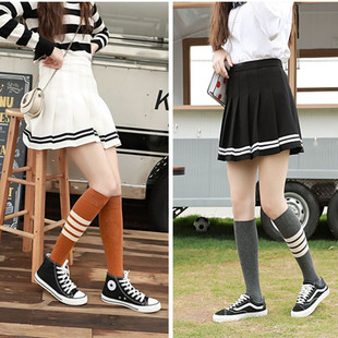 韩国全棉小腿袜 女士长袜 及膝学院风半截高筒袜AB袜三条杠滑板袜 RMB:5.5