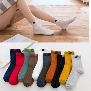 一件代发秋冬女士全棉中筒袜子女糖果色日韩百搭棉袜厂家批发 RMB:2.1