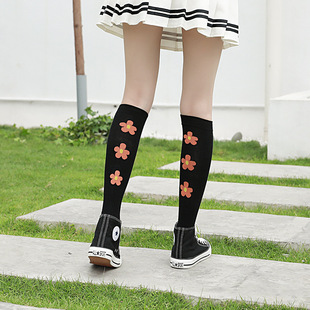 泫雅风全棉中高筒袜子 及膝显瘦小腿袜 齐膝小花袜子长筒女袜批发 RMB:5.5