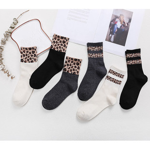 新款袜子女 全棉中筒女袜罗口拼接豹纹袜2条杠袜女袜批发 RMB:2.3