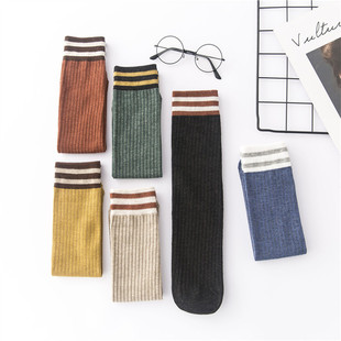 秋冬新品日系堆堆袜女袜二条杠双针学院风中筒女袜全棉袜子批发 RMB:3.52