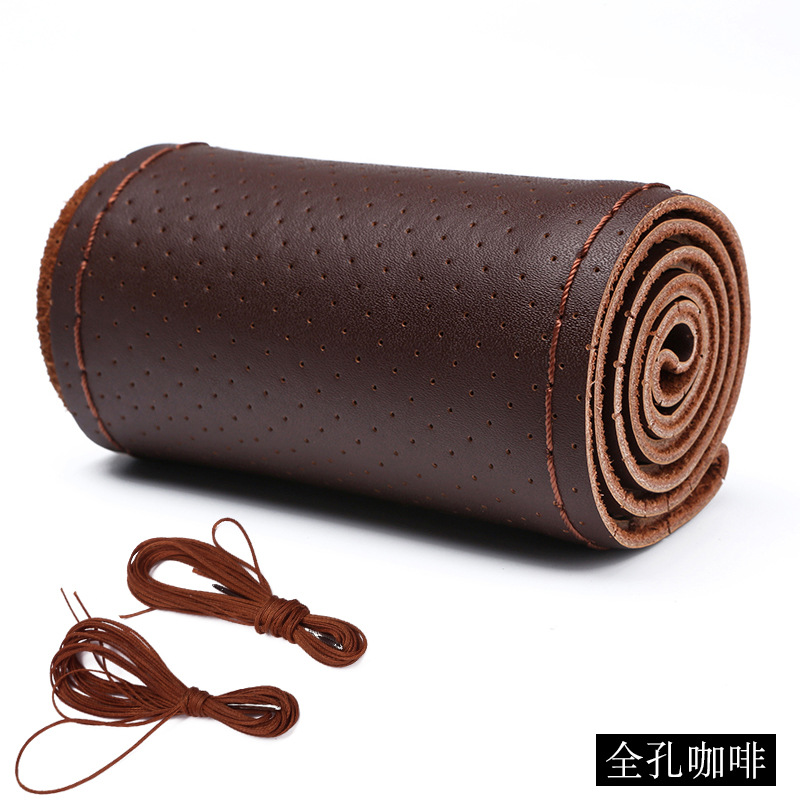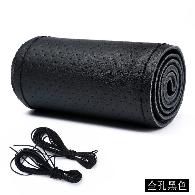 4 계절을위한 가죽 핸드 스티치 스티어링 휠 커버 유니버설 소가죽 자동차 핸들 커버