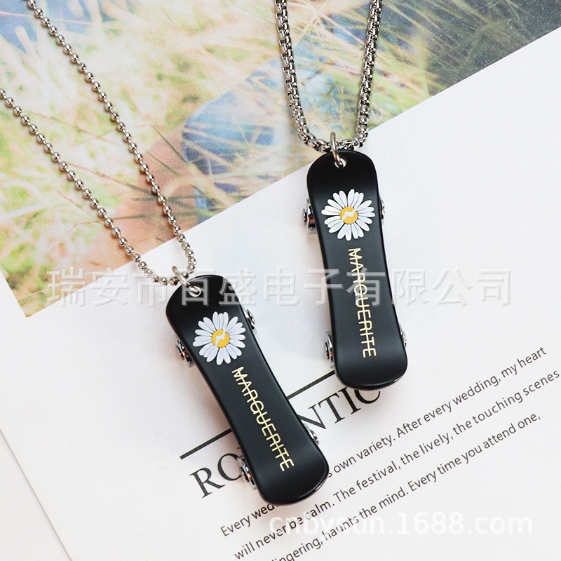 厂家雏菊滑板车锌合金滑轮吊坠钛钢项链学生挂件钥匙扣创意BS-713