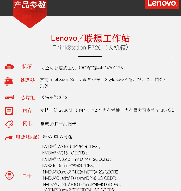 Lenovo ThinkStation P720 듀얼 채널 타워 그래픽 워크스테이션 AI 인공 지능 3D 그래픽 렌더링스토어 가기