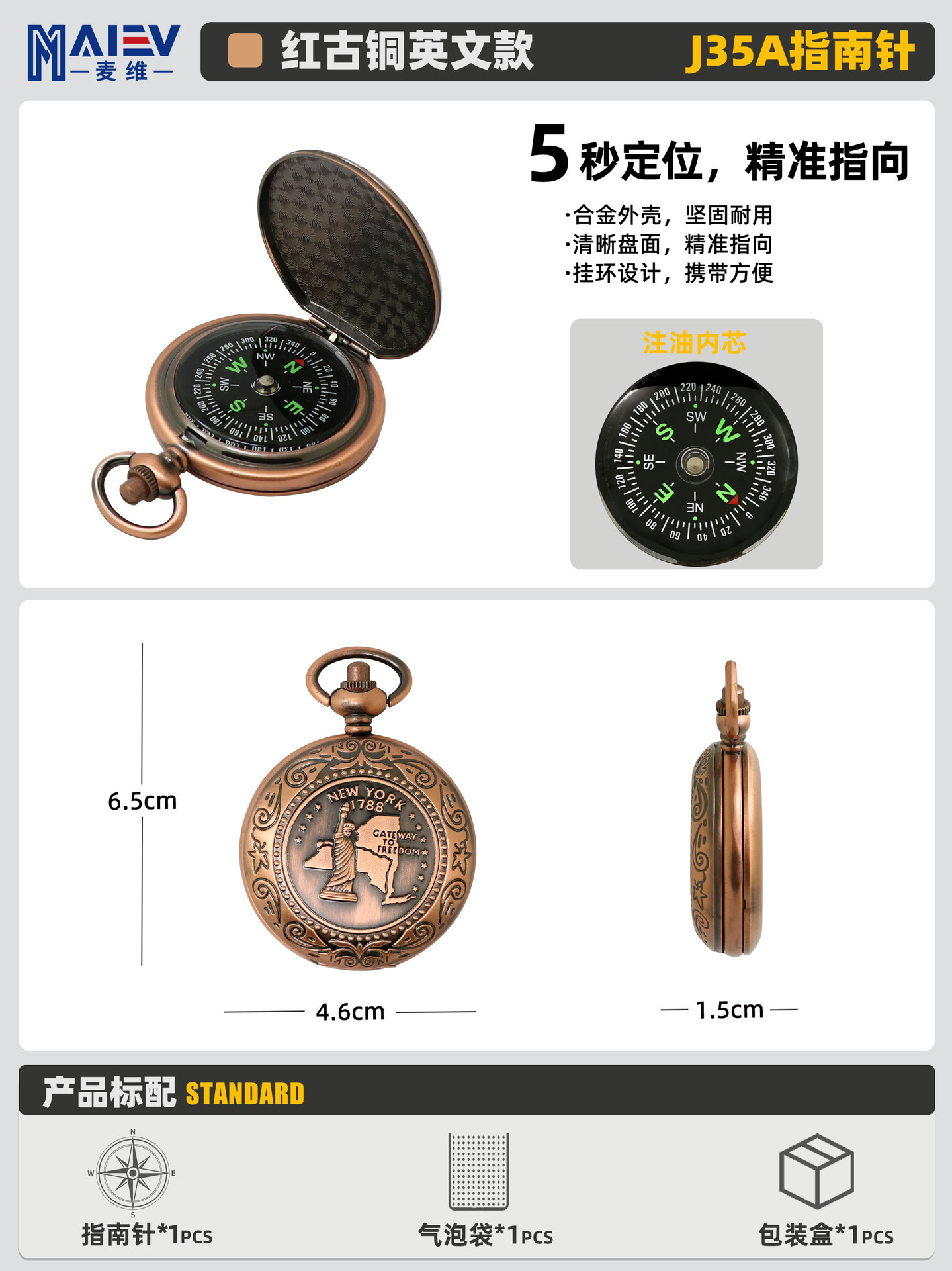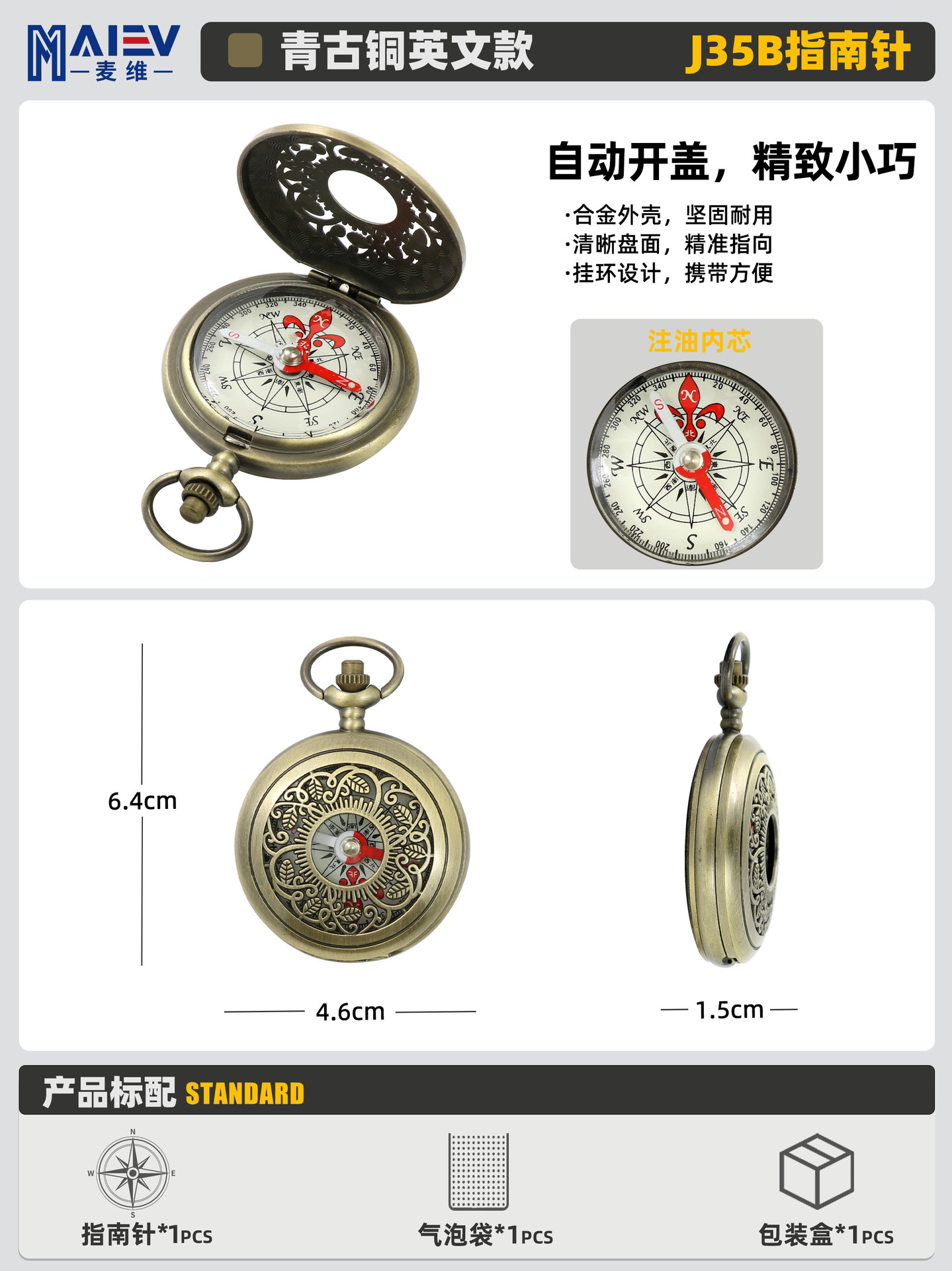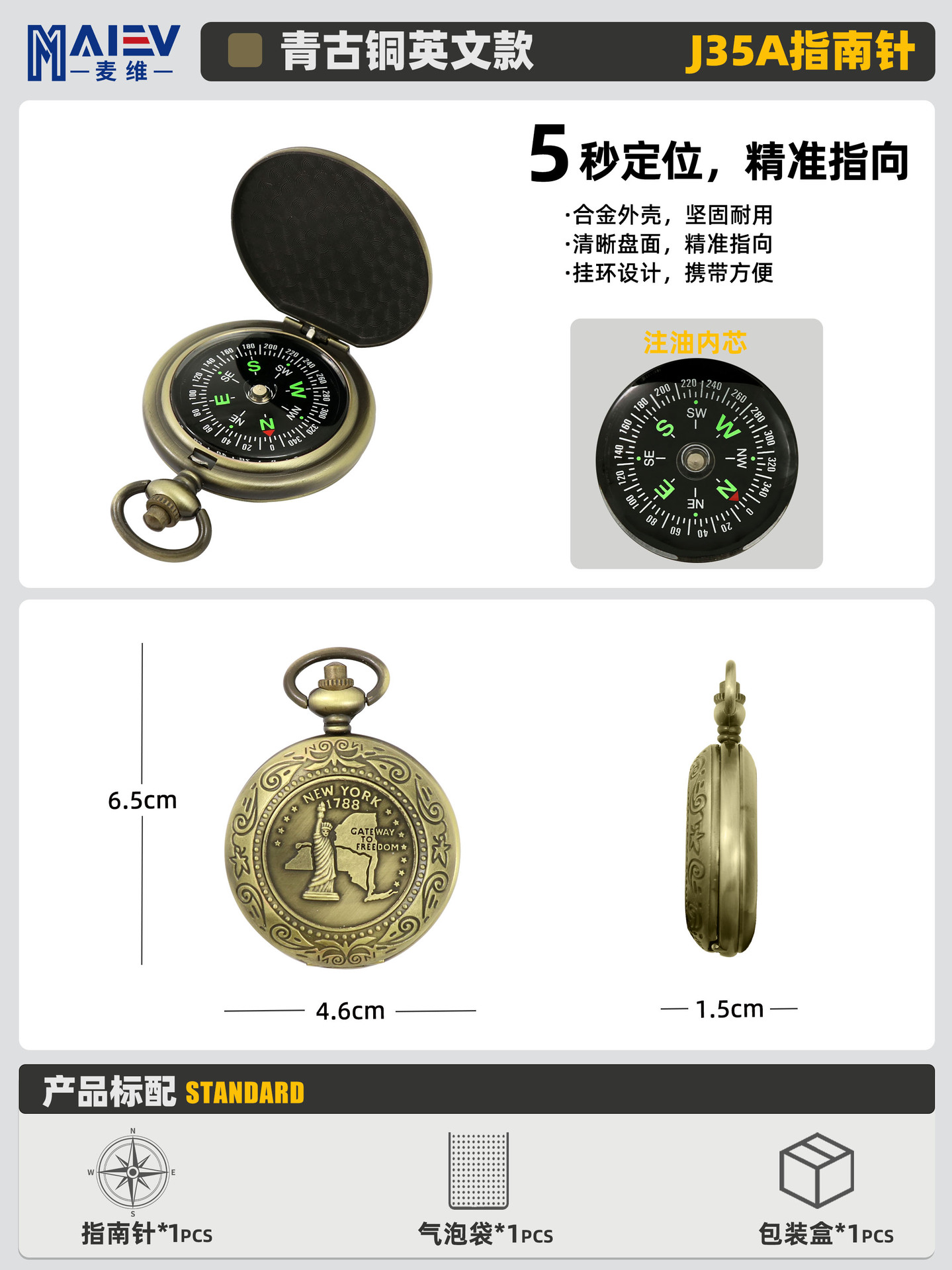 순동 나침반 G50 회중시계 금색 플립커버 광택 야광 나침반 북쪽 지침용 야외 캠핑 도매스토어 가기