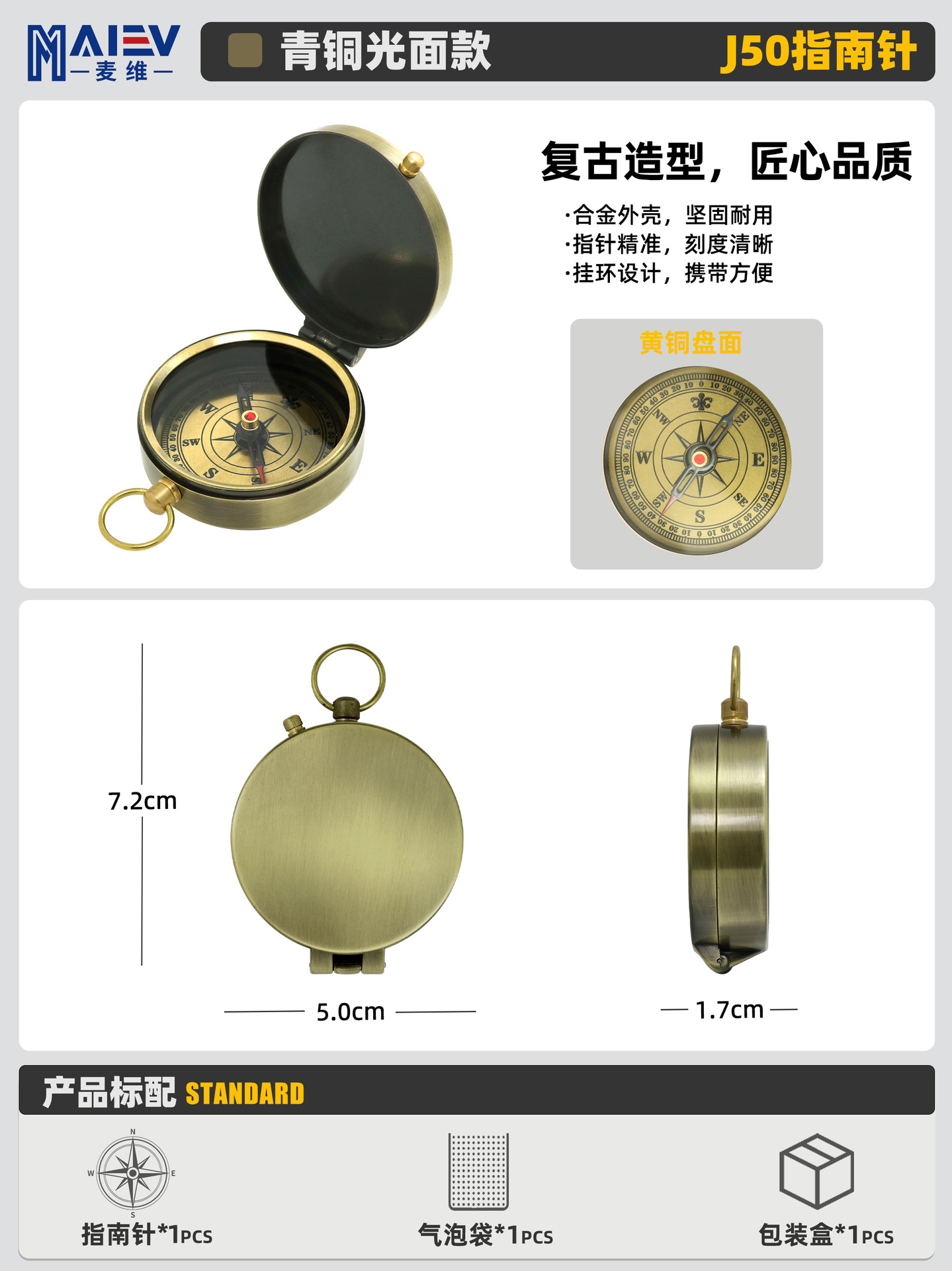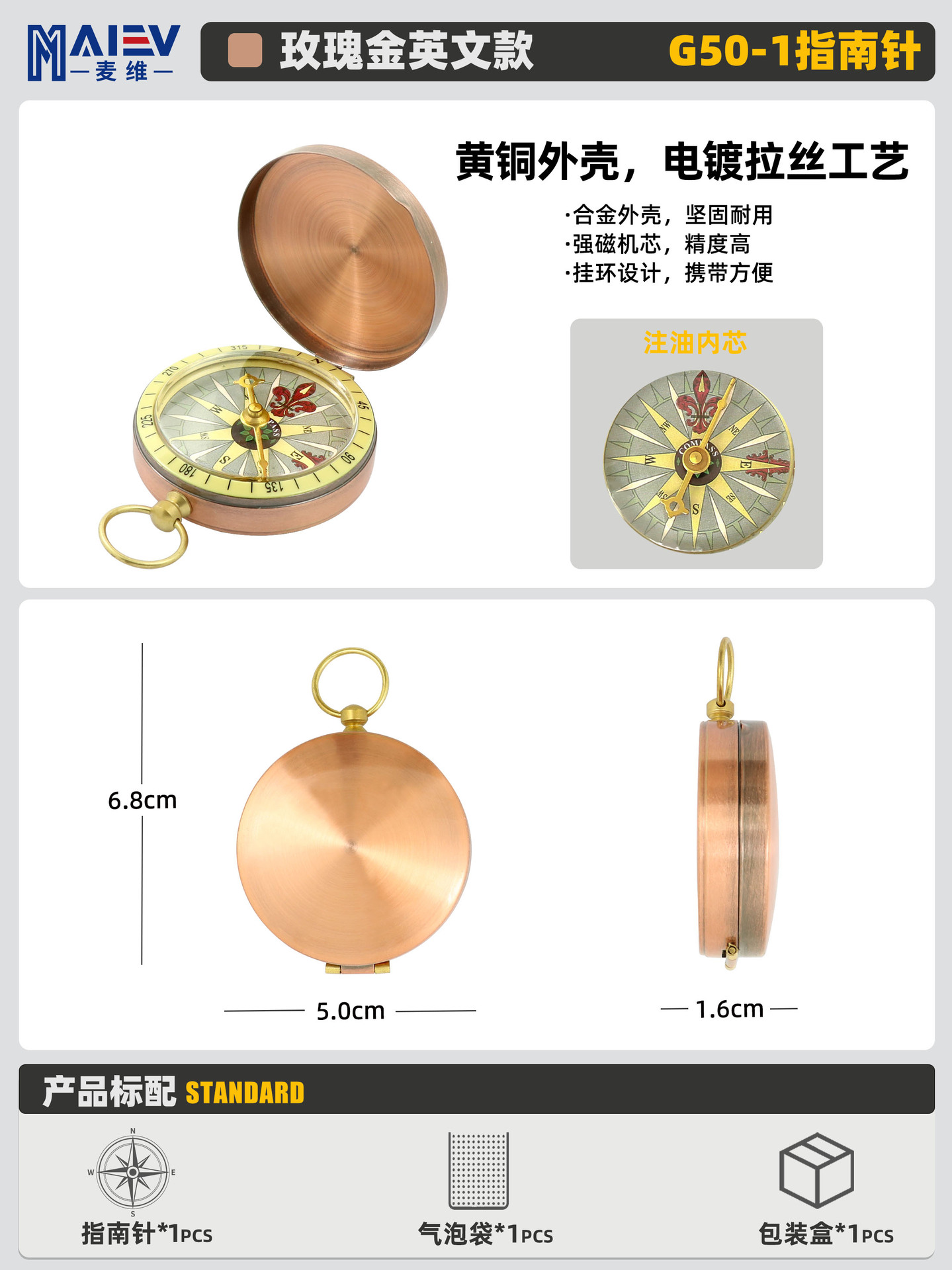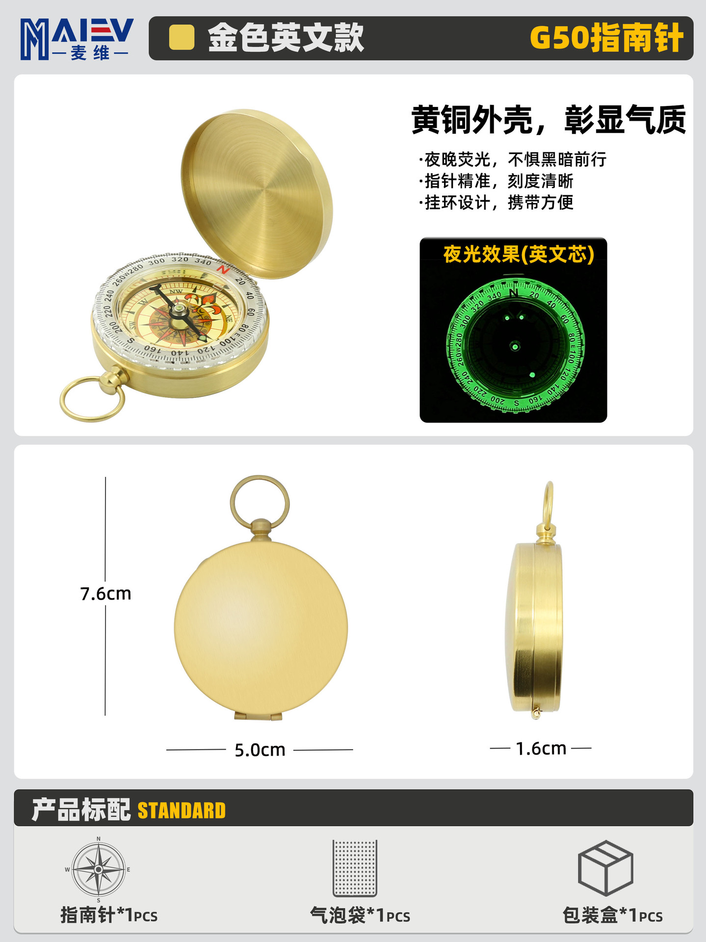 순동 나침반 G50 회중시계 금색 플립커버 광택 야광 나침반 북쪽 지침용 야외 캠핑 도매