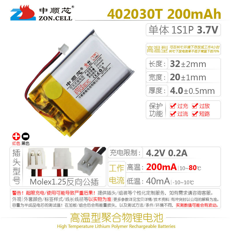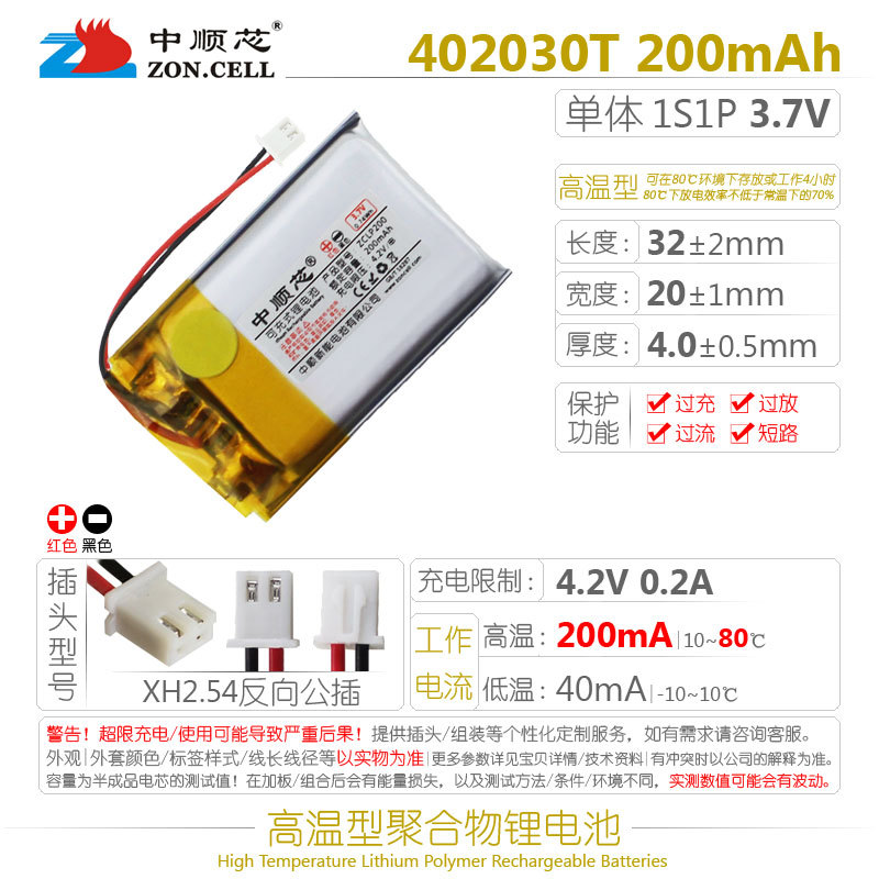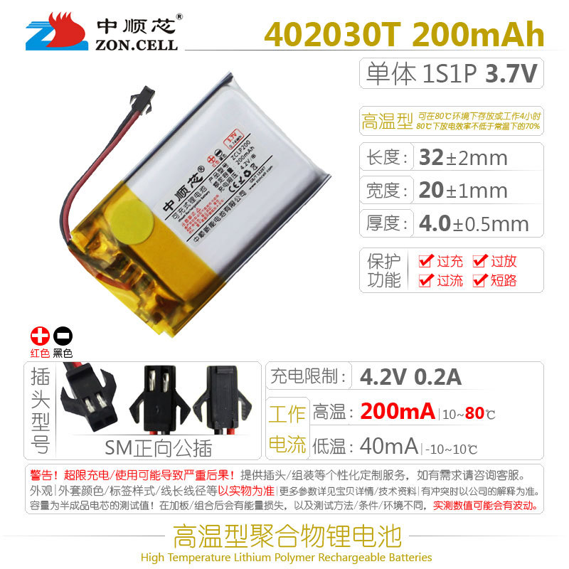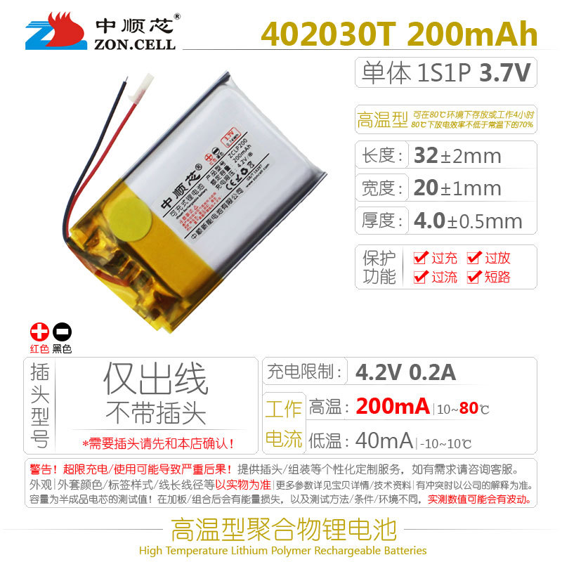 Zhongshunxin 402030 운전 기록 장치 Anye Xing EX4 블루투스 체중계 고온 폴리머 리튬 배터리 3.7V