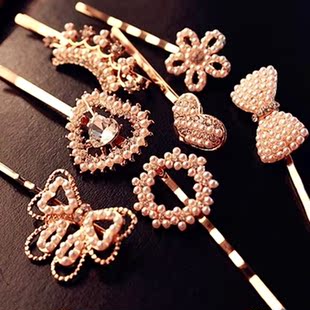韩版进口珍珠水钻一字夹边夹刘海夹时尚饰品头饰批发