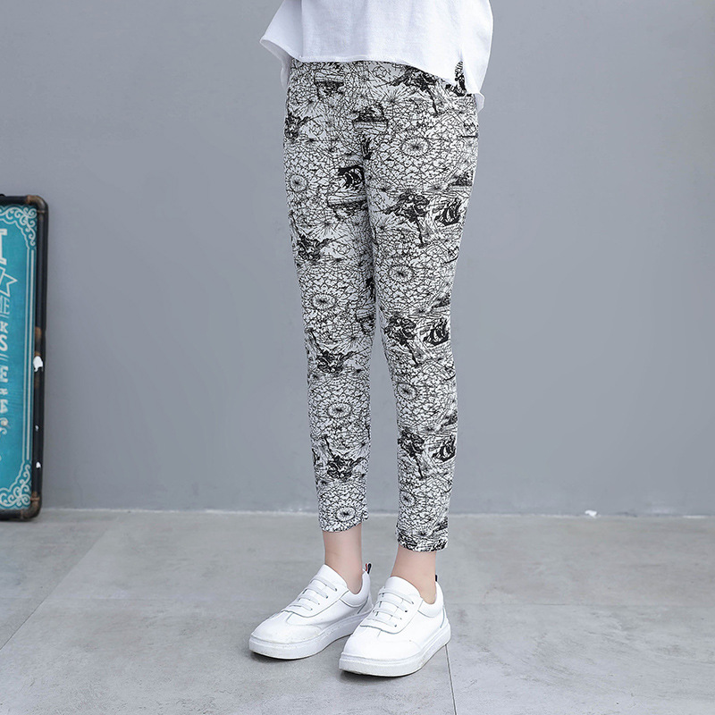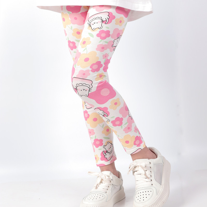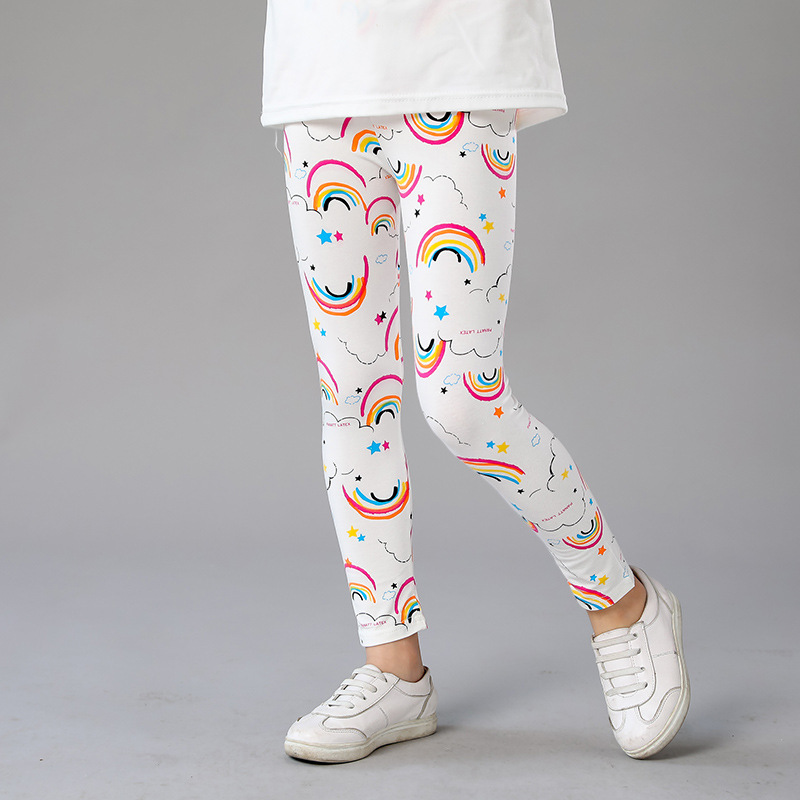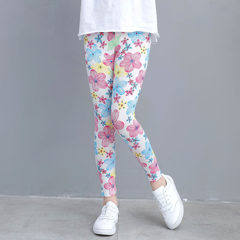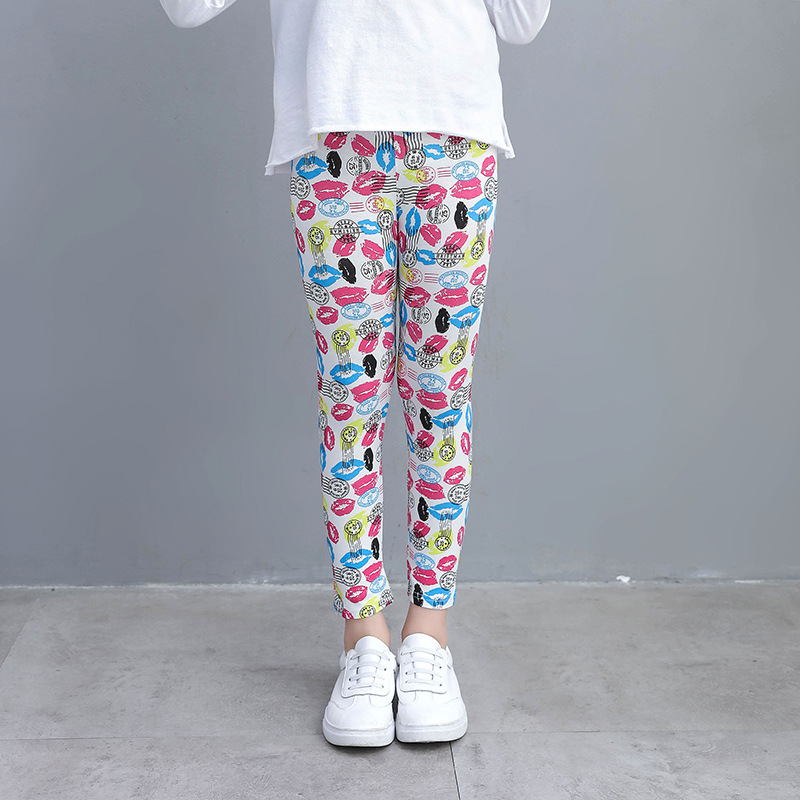 아동용 레깅스 봄, 가을 모달 얇은 여아 9부 캔디 컬러 프린트 레깅스 여름 모기 방지 바지 아동용 바지스토어 가기