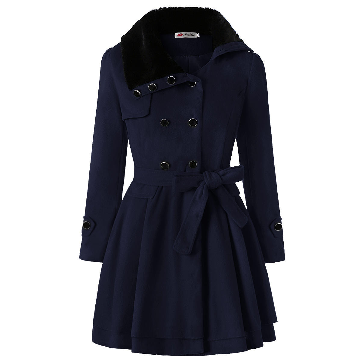 알리익스프레스 위시 신상 유럽풍 여성용 슬림핏 중간 길이 모직 코트 더블 버튼 두꺼운 모피 칼라 코트스토어 가기