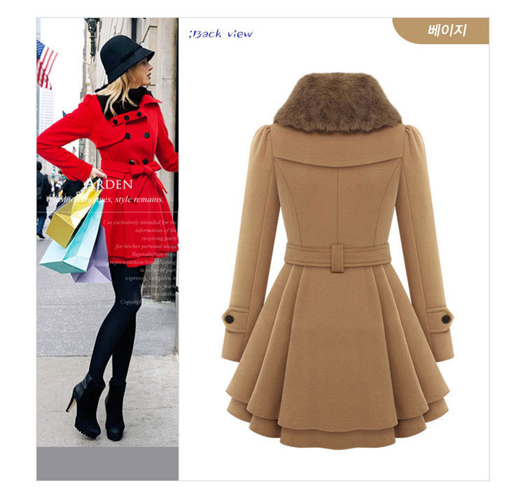알리익스프레스 위시 신상 유럽풍 여성용 슬림핏 중간 길이 모직 코트 더블 버튼 두꺼운 모피 칼라 코트