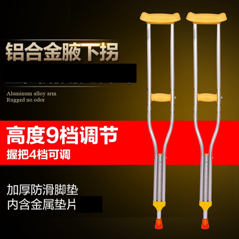 腋下拐分为,铝合金,不锈钢,两种材质,有黄色,灰色,双升腋托十档调节,腋托到把手距离是35-58,整体长度是102.5-144.5undefined
