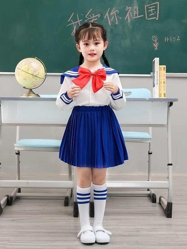 • 미소녀 전사 세일러문 여아 세트 (긴팔 상의 + 파란색 스커트) + 빅 리본 증정 + 양말 증정