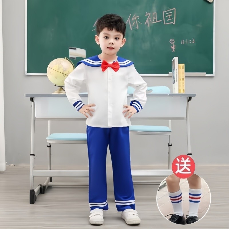 • 미소녀 전사 세일러문 남아용 세트 (긴팔 상의 + 파란색 긴바지) + 나비넥타이 증정 + 양말 증정
