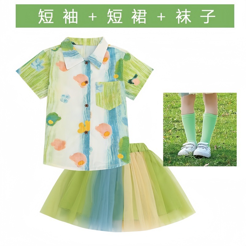 • (여아) 그린 4종세트 (반팔셔츠+투투스커트+양말+스퀘어스카프)