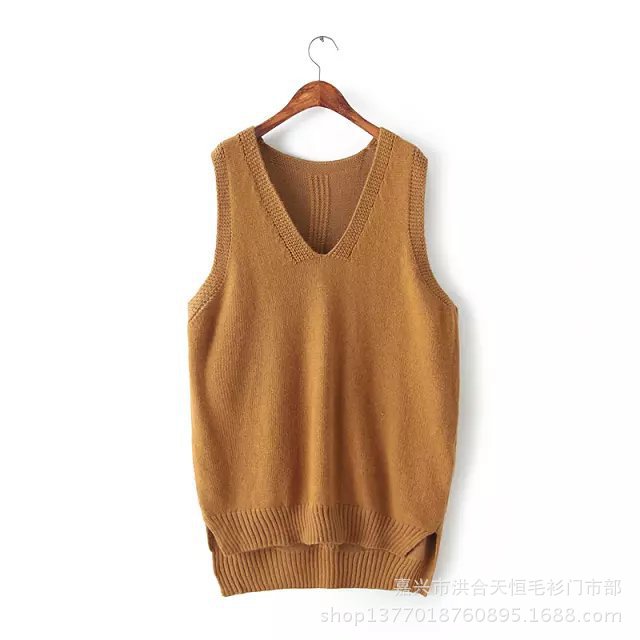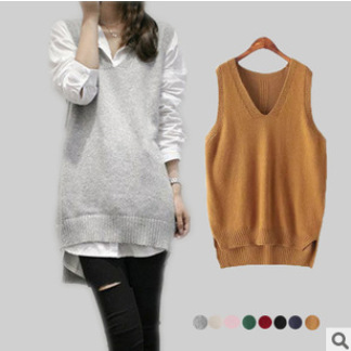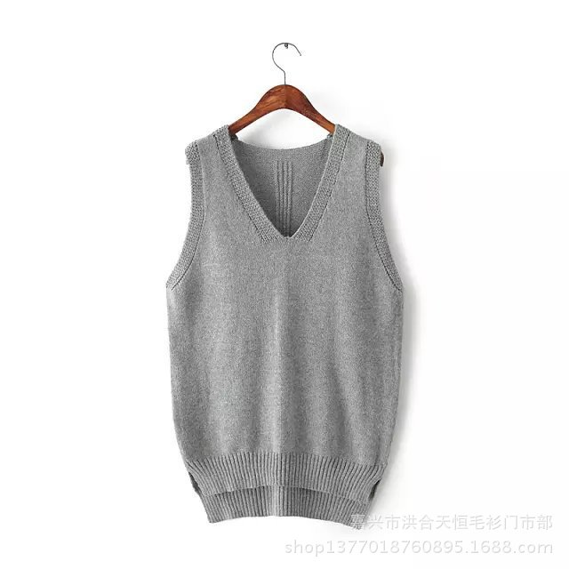 봄과 가을 2023 한국식 풀오버 여성용 중간 길이 울 민소매 느슨한 V-넥 니트 스웨터 조끼스토어 가기