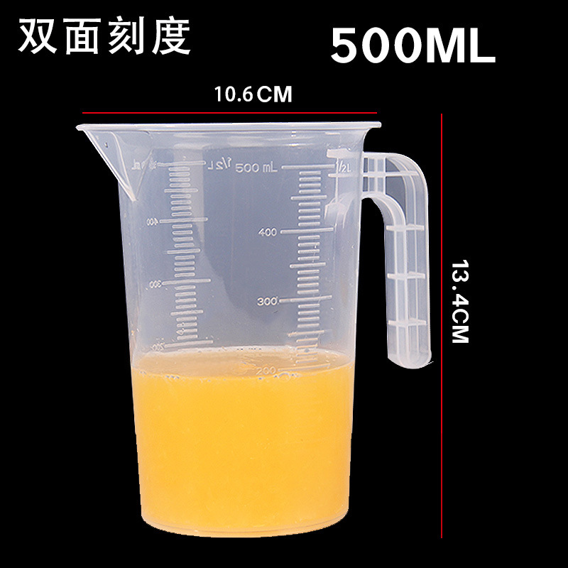 产品说明:美观好看,外面带磨砂螺纹效果,容量刻度明了,实惠耐用。