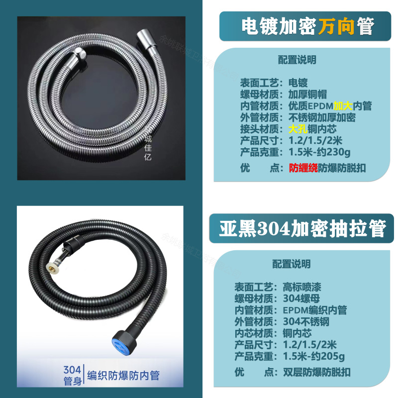 • (향상된 두꺼운 방폭 및 트립 방지) 1.8m 전기 도금 암호화 튜브 이중 구리 캡 epdm 내부 튜브)